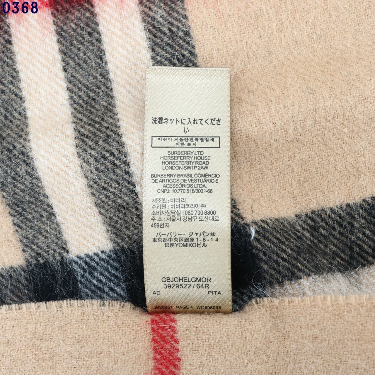 버** 체크 캐시미어 스카프 베이지 키즈용
