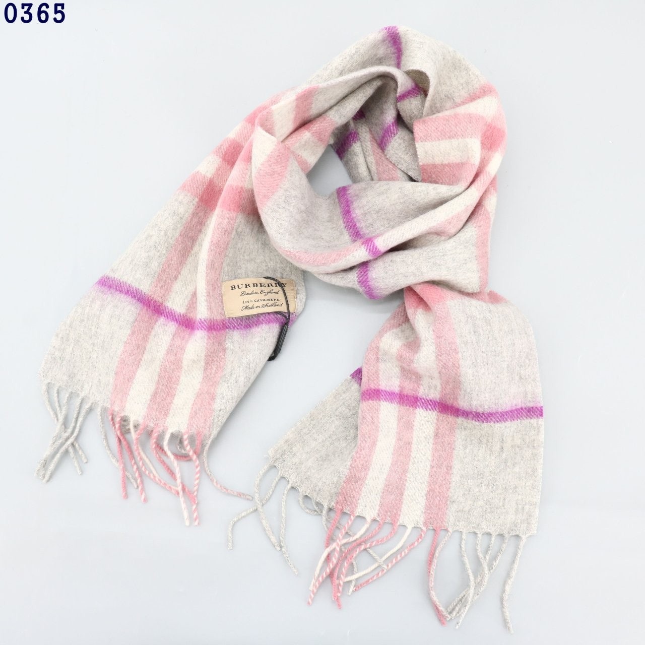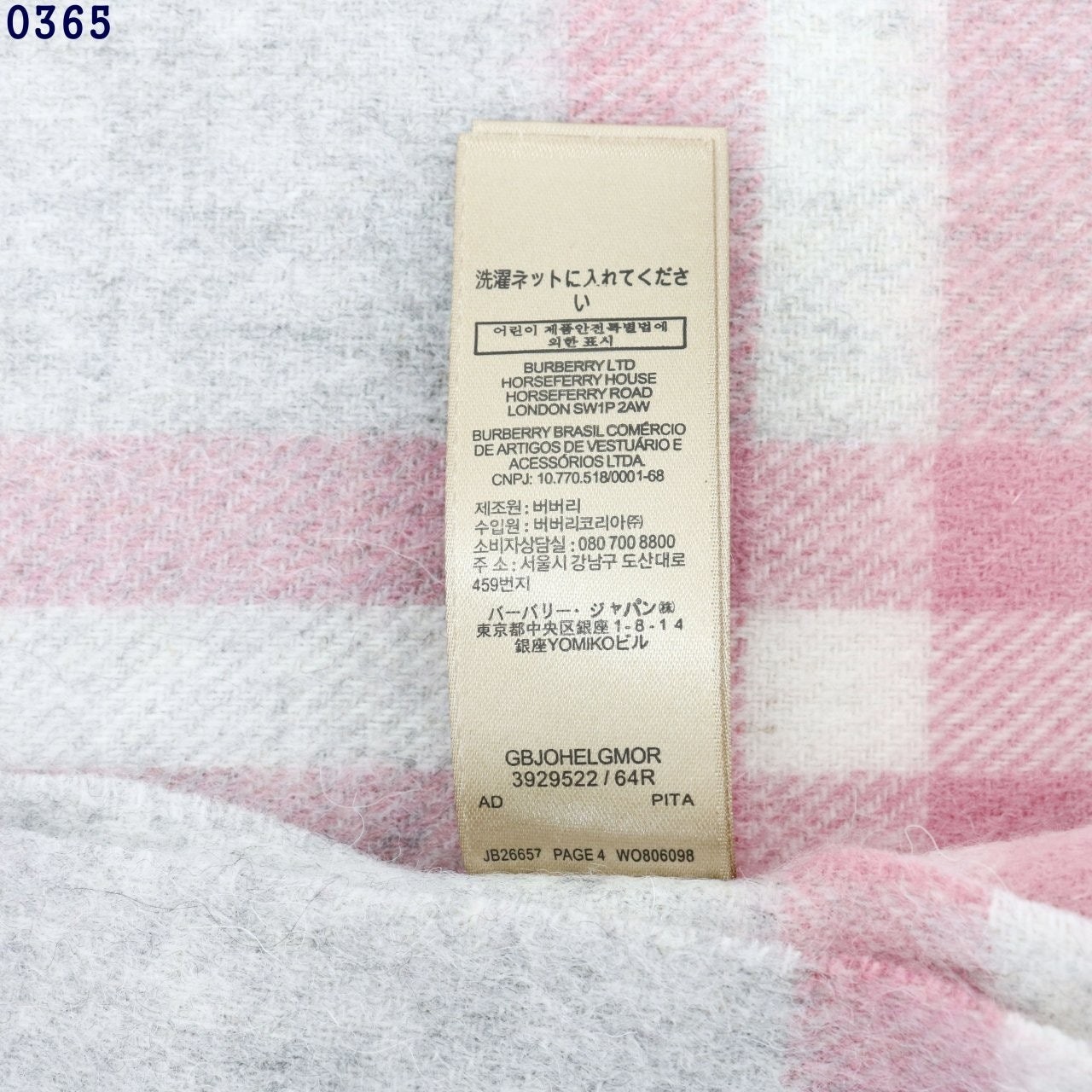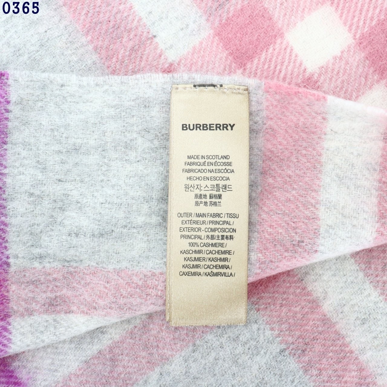 버** 체크 캐시미어 스카프 그레이 키즈용