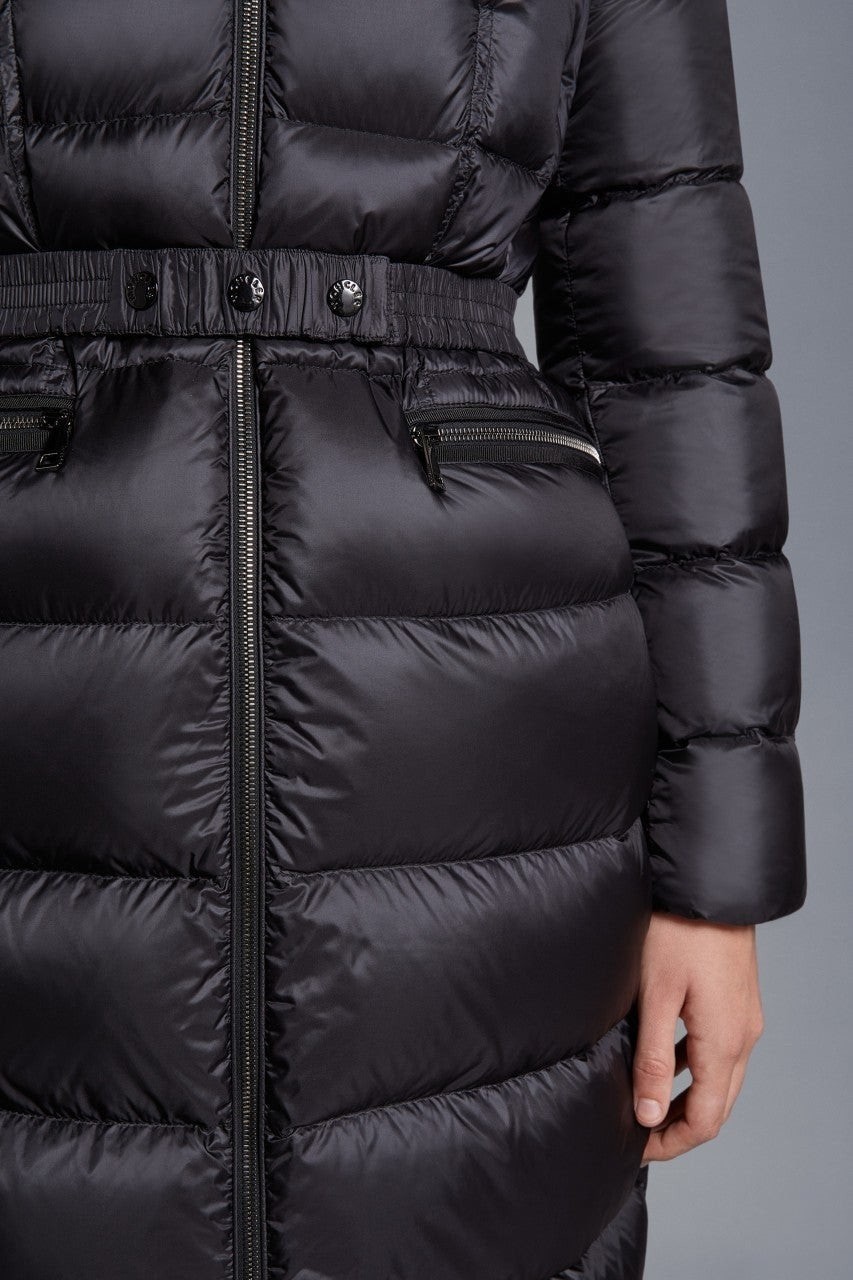 Boedic 롱 다운 재킷은 벨트 웨이스트라인으로 드러나는