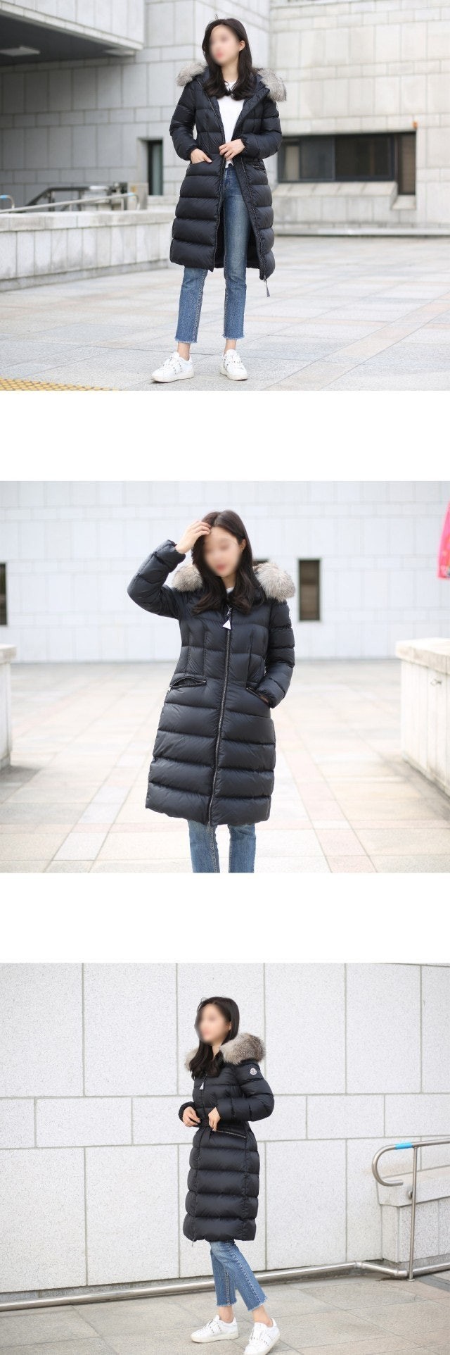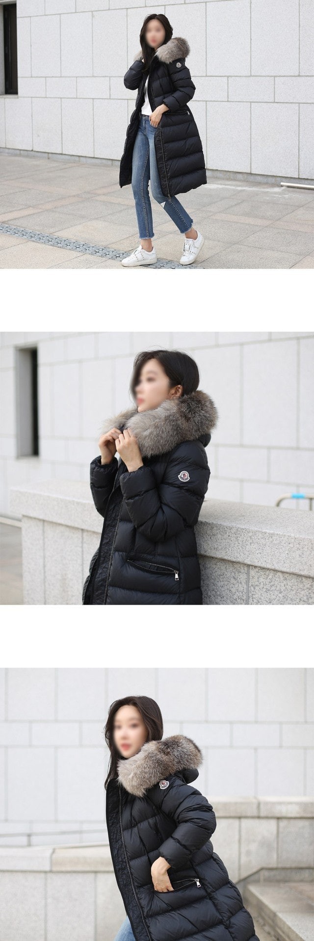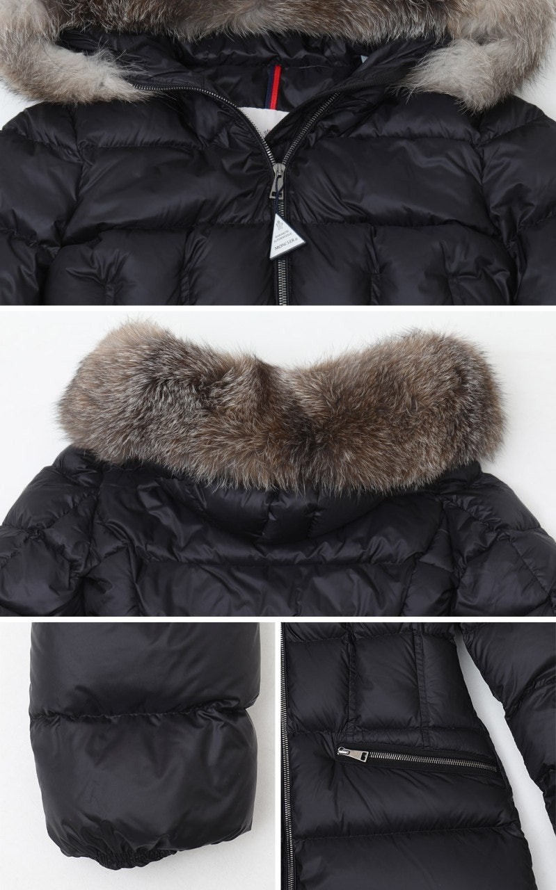 다운 코트의 포근한 후드에는 고급스러운 롱 헤어 쉽스킨