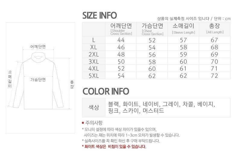 색상 - 블랙, 화이트, 네이비, 그레이, 차콜, 베이지, 핑크, 스카이, 머스터드