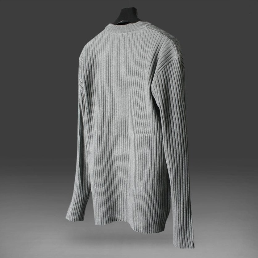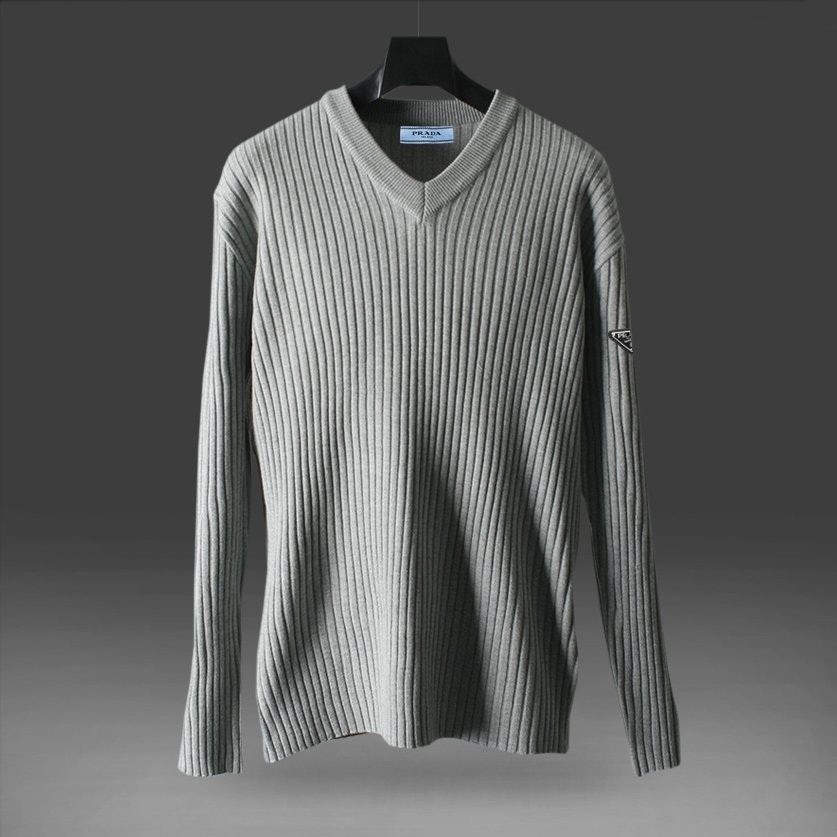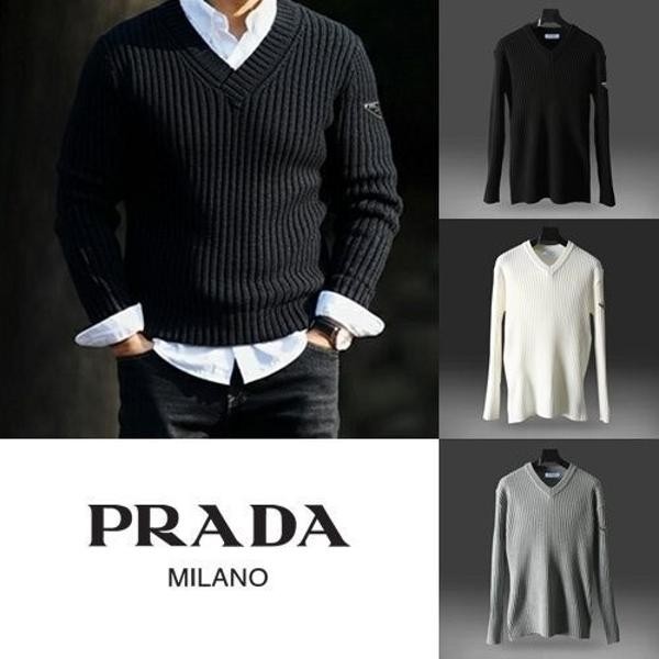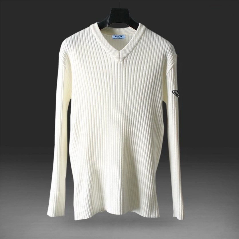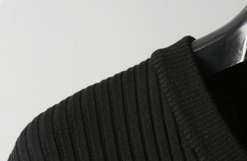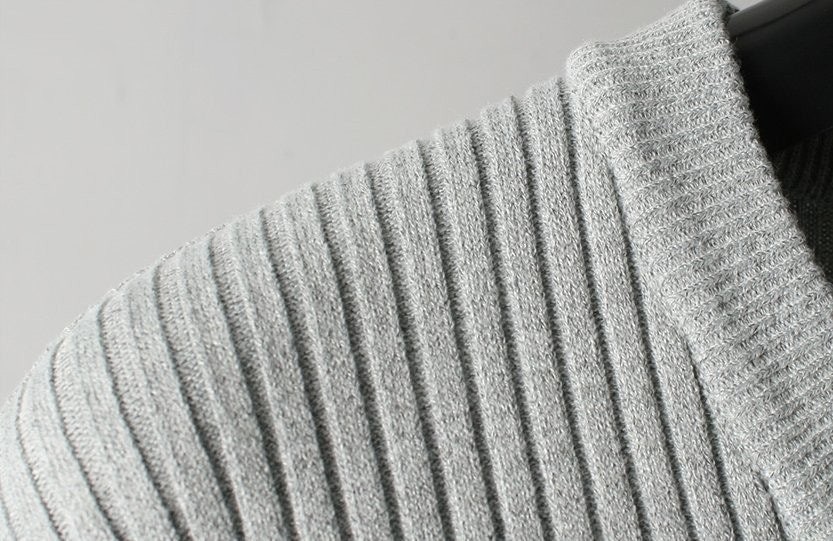 프** 솔리드 골지 브이넥 니트