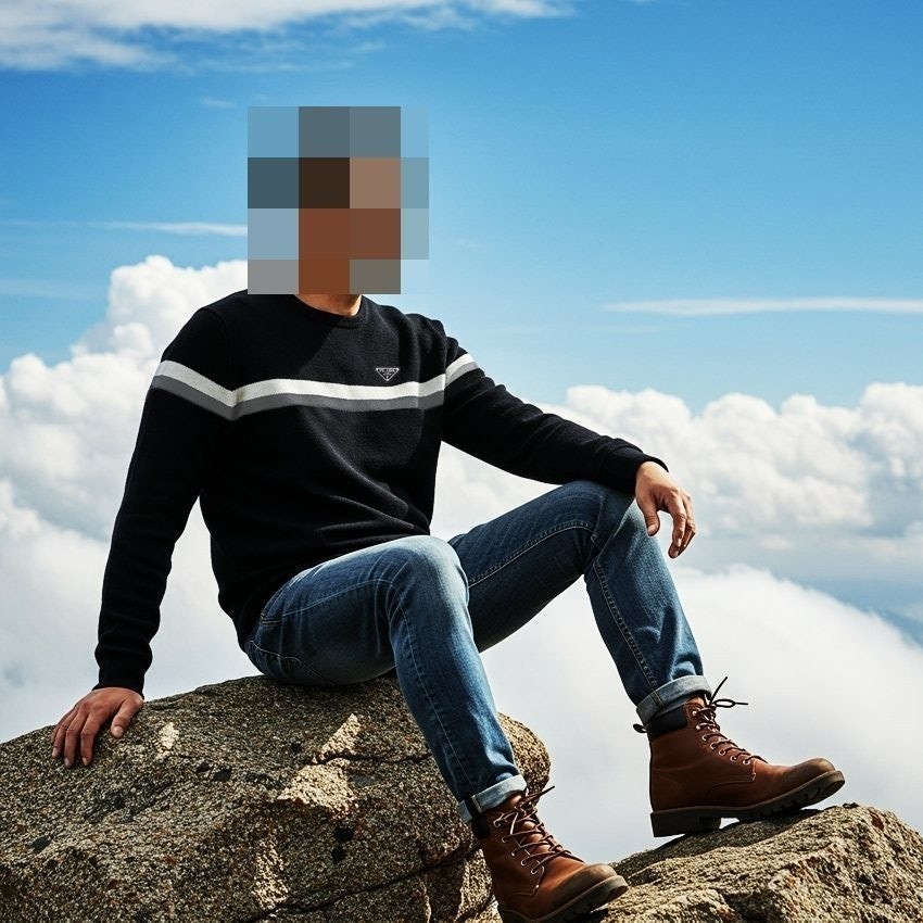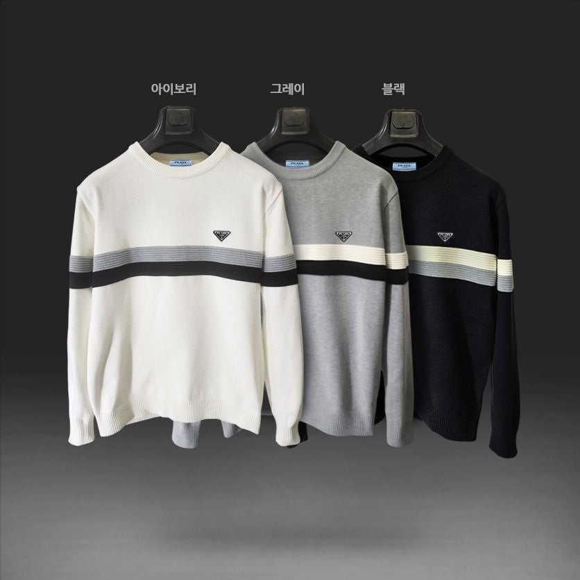 프** 엠보배색 라운드 니트