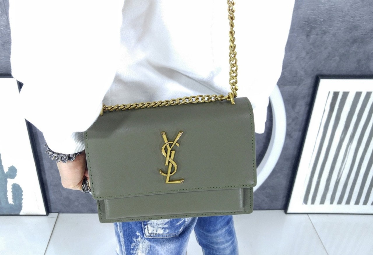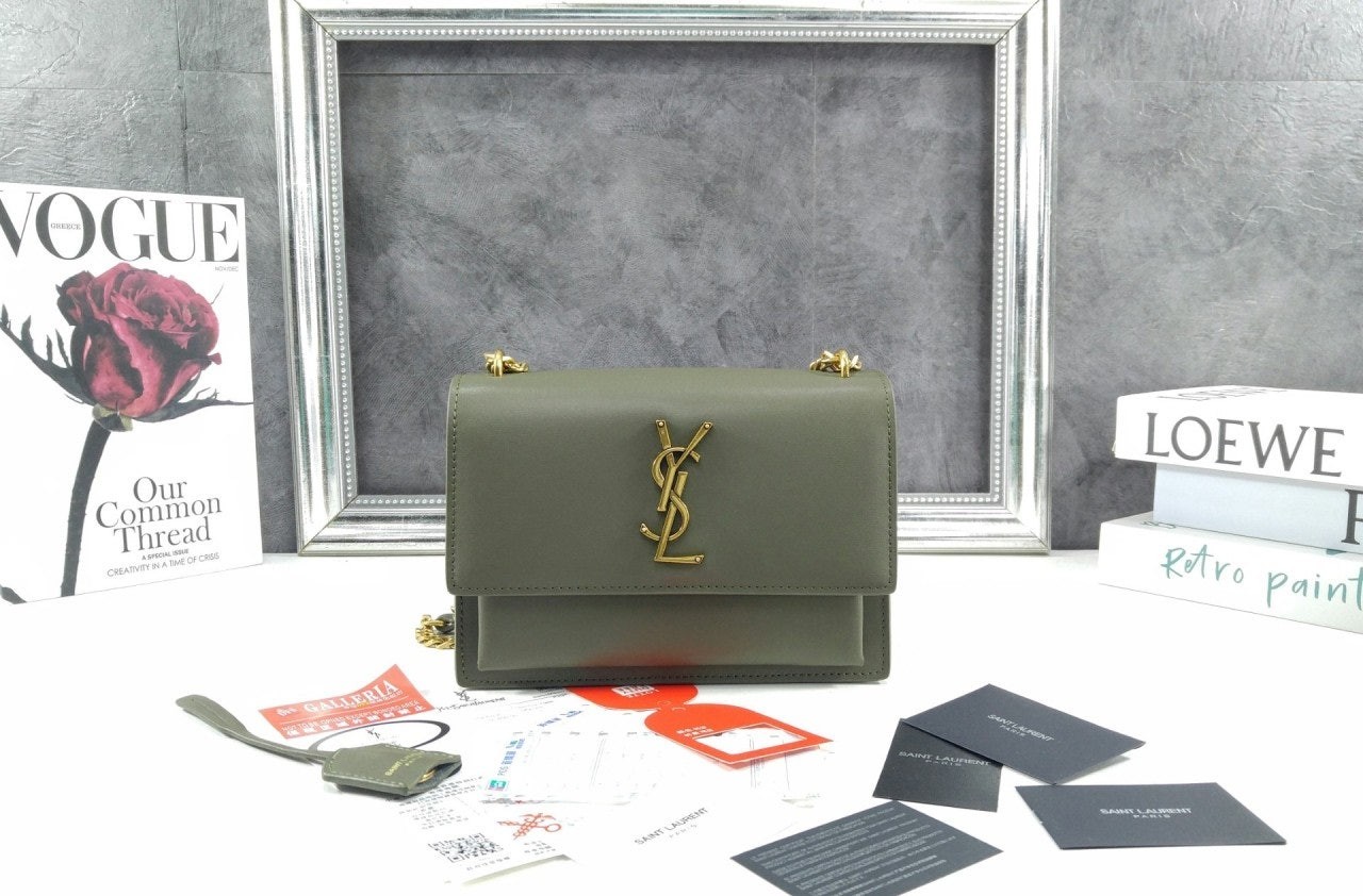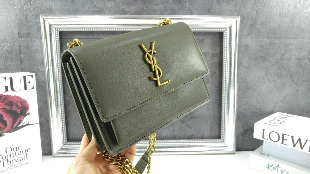 생** 부드러운 가죽 소재의 sunset 미디엄백 Khaki 풀박스