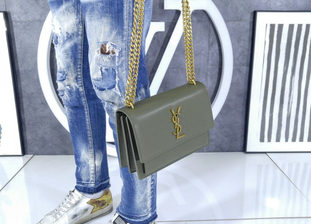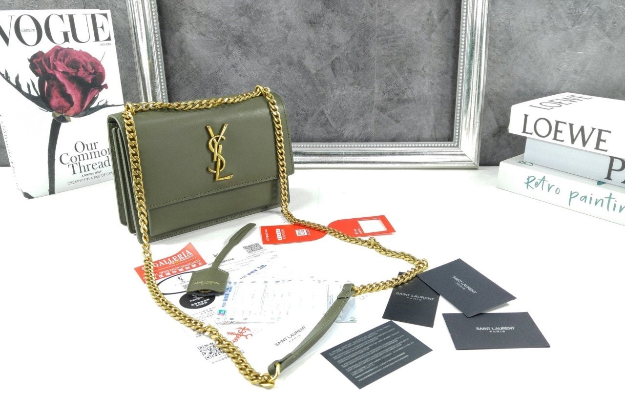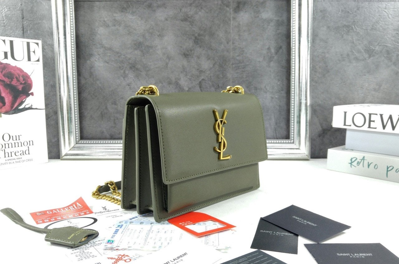 생** 부드러운 가죽 소재의 sunset 미디엄백 Khaki 풀박스