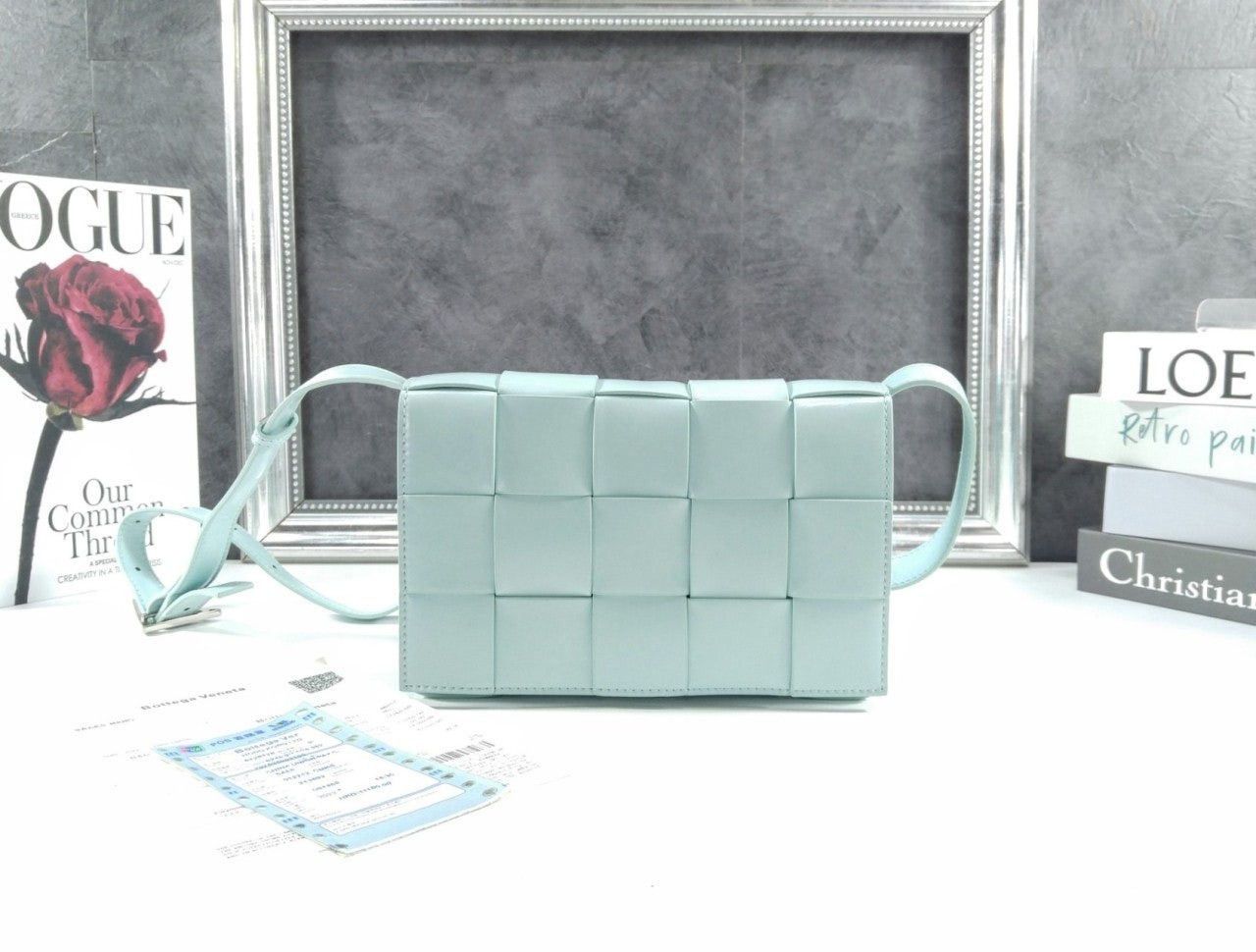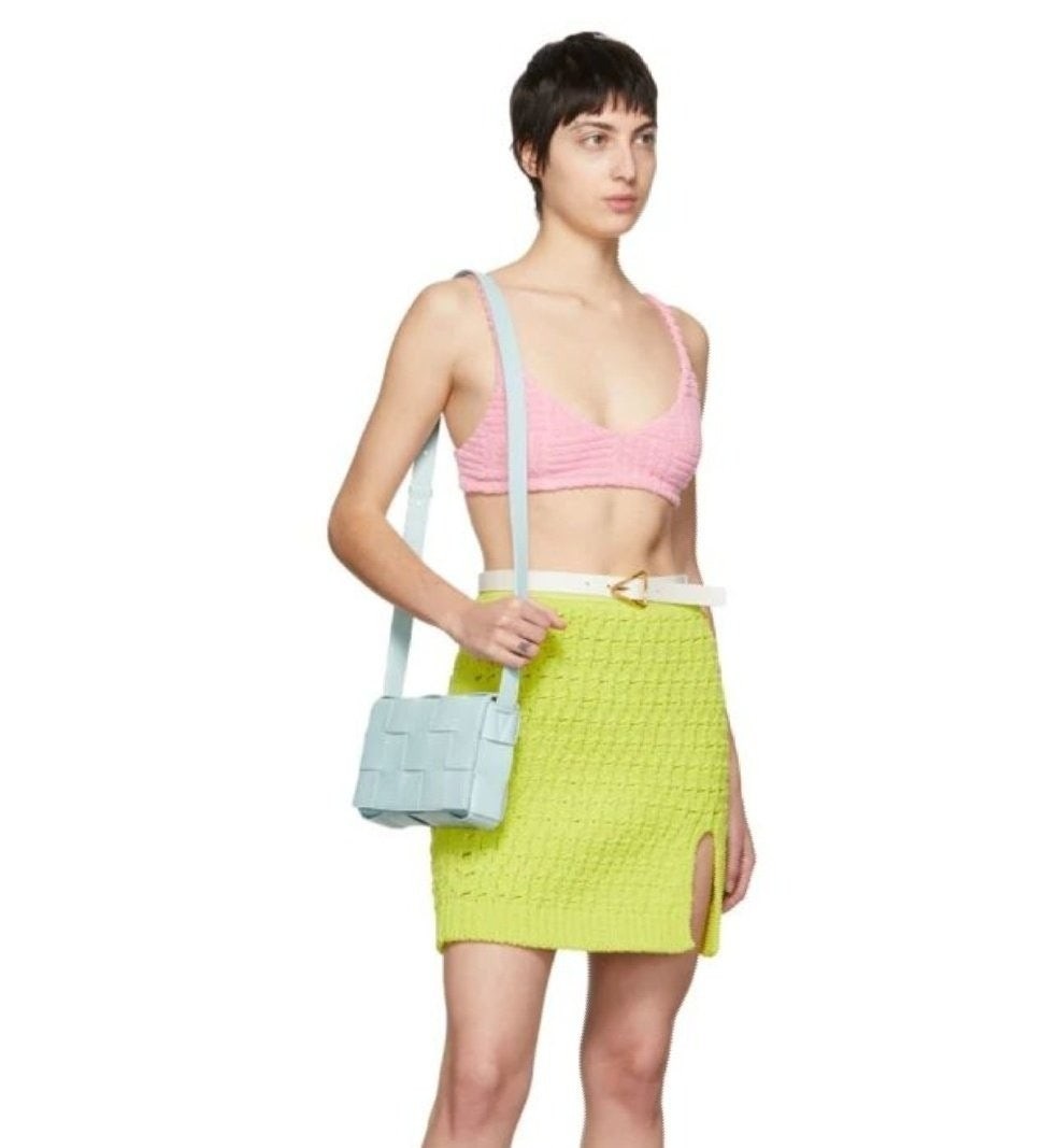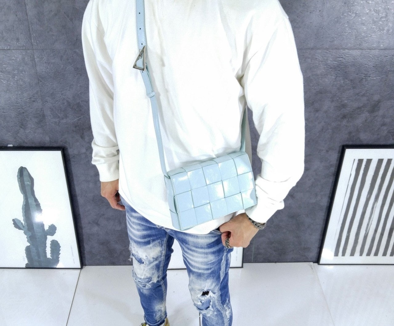 가죽소재를 인트레치아토 위빙으로 완성한 크로스바디 백