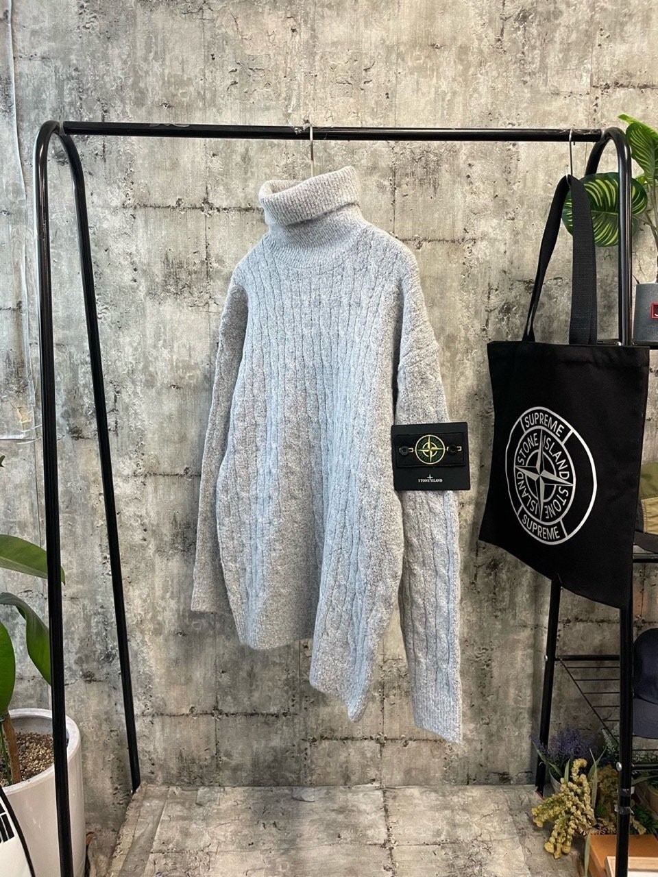 매력적인 실루엣의 램스울 꽈베기 목폴라 니트 입니다.