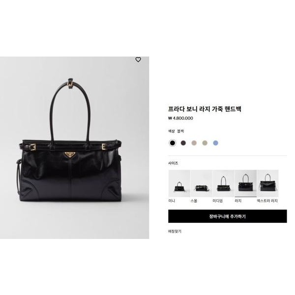 • 프** 보니 라지 가죽 핸드백 블랙