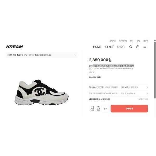 샤* cc 스니커즈 프린티드 카프스킨 화이트 블랙