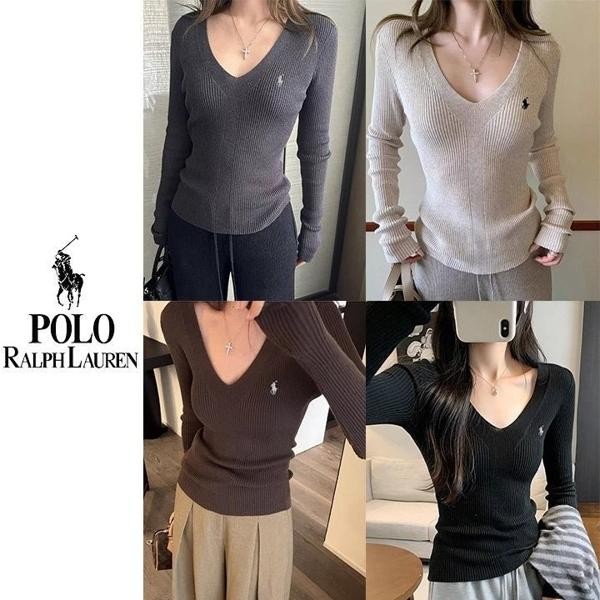 폴* 브이넥 자수 골지니트