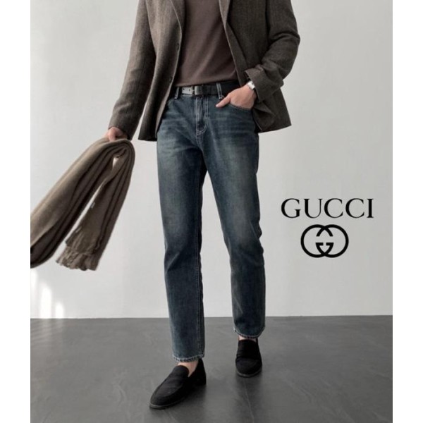 코튼 100% 난스판 원단으로 제작하였으며 일반 청 컬러 원단보다 고가인 WDB 원단을 사용하여 다크블루 컬러감으로 레트로한 무드나 깔끔한 무드의 코디에도 잘 어울리는 구X 테이퍼드 진 이빈다.