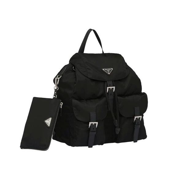 세련된 사피아노 가죽 트리밍 장식이 있는 나일론 백팩으로, 여러 재료를 조합해 모던한 매력과 변하지 않을 우아함을 표현했습니다. 메탈 트라이앵글 로고가 장식되어 있습니다.
