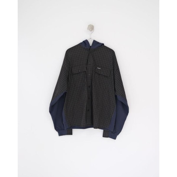 •Balencia**(발****) 25FW 체크 포켓 셔츠 재킷으로, 여러 연예인과 셀럽 들이 착용한 스타일입니다. 오리지널을 바탕으로 개발했으며, 면으로 직조한 컬러 원단을 패널별로 짜 맞춘 뒤 니트 공정을 더한 스페셜 기법을 적용해 위치별 재단과 봉제가 정확하게 맞아떨어지도록 제작했습니다. 원단 소모가 크고 공정이 많은 편이며, 여덟 똑딱이 버튼 금속 장식과 YB(원본) 사양을 일치시켰습니다. 완성 후에는 워싱과 효소 처리를 통해 빈티지한 느낌을 살렸고, 패턴과 실루엣은 오리지널 버전과 동일해 착용 시 자체적으로 스트릿한 무드를 연출합니다. 전체적으로 표준적인 넉넉한 루즈핏입니다.