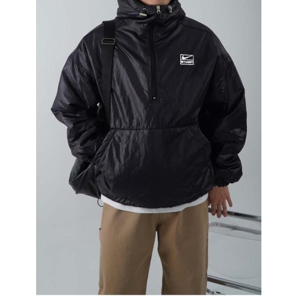 100% 나일론 소재로 글로시한 재질로 제작되어 유니크한 무드의 아노락 패딩입니다. 넥라인에 지퍼 디테일로 하이넥, 카라넥 등 여러 연출이 가능하며 후드, 밑단에 스트링과 3온스 누빔으로 겨울철 따듯하게 착용가능합니다.
