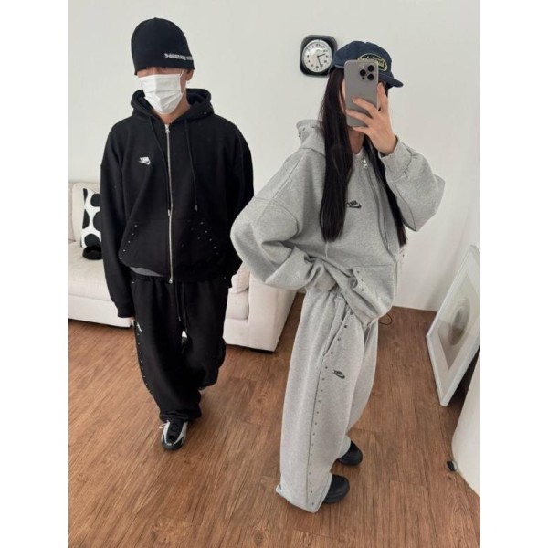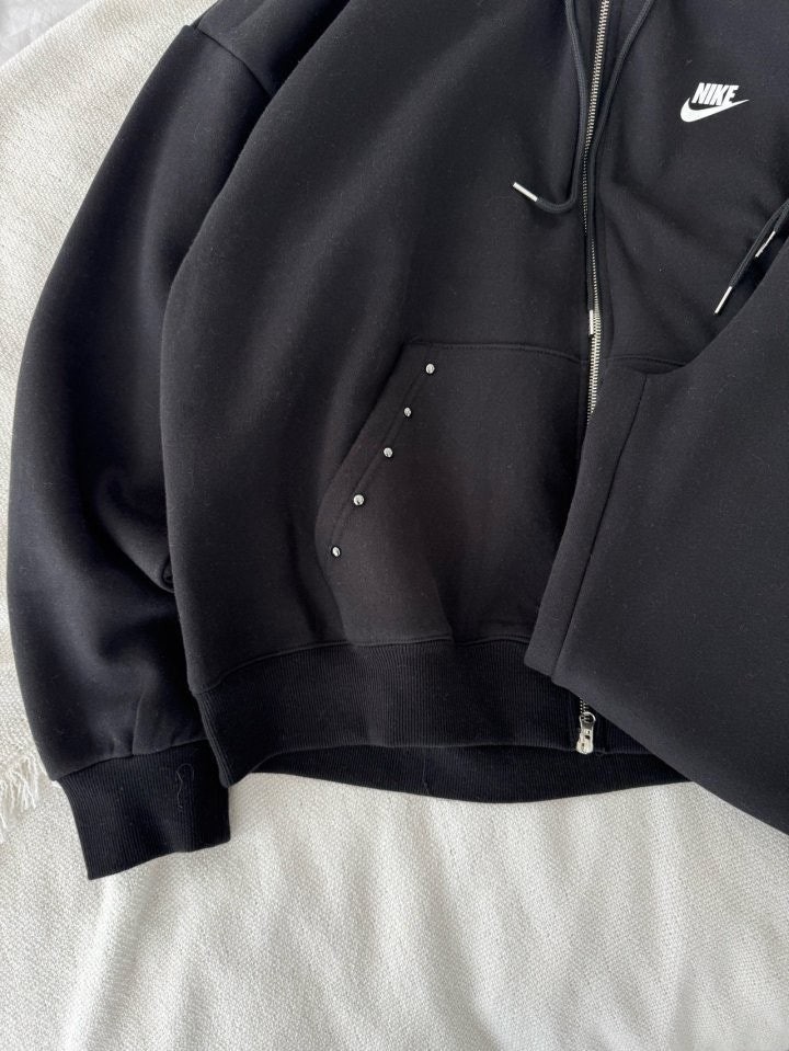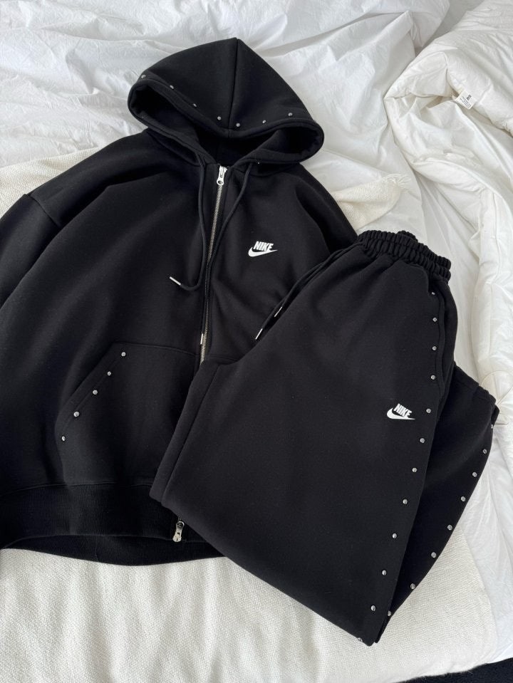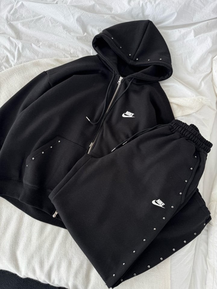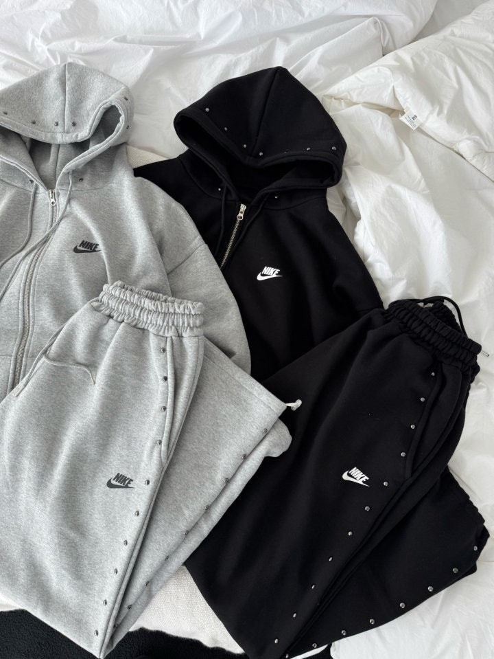 상하의 스터드 포인트로 손이 자주 갈 제품이며 후드팬츠 오버핏 체형으로 커버 가능하며 흐르는 듯한 오버핏으로 부해보이지않은 제품입니다.