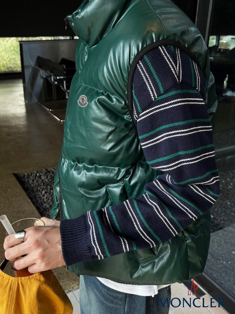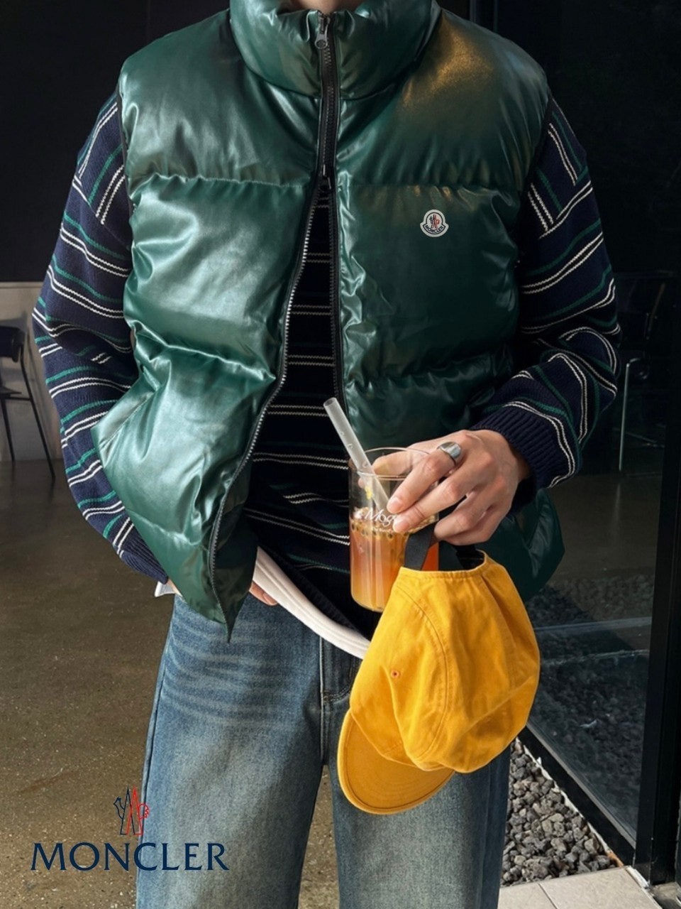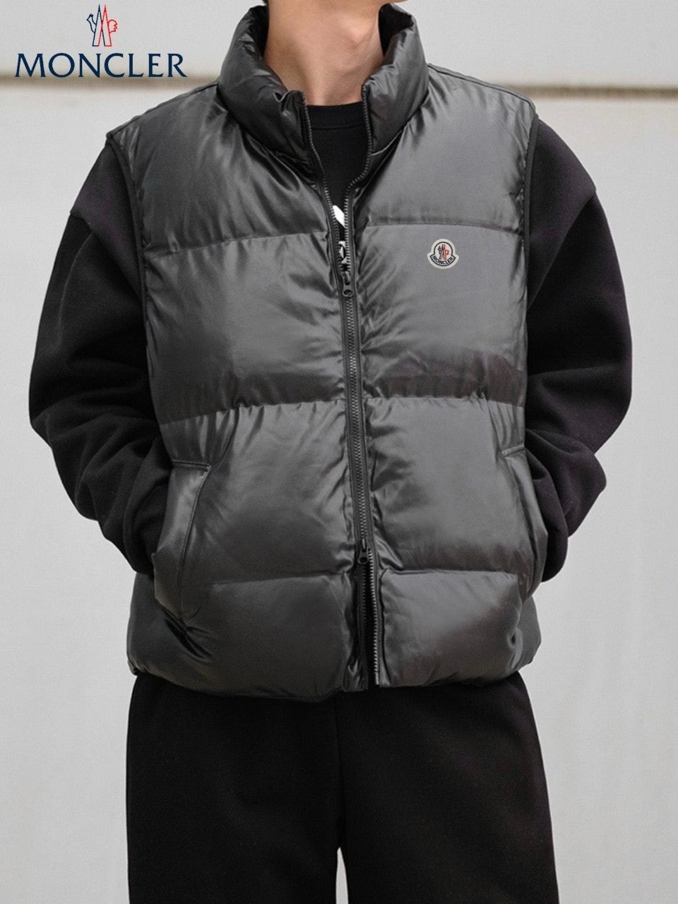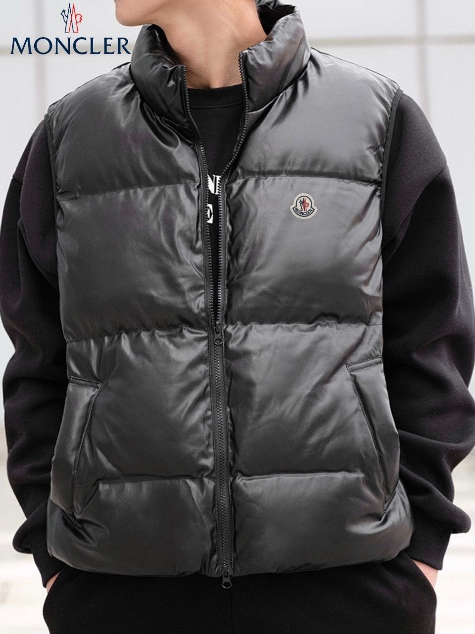레더의 고급스러움이 묻어나는 패딩조끼입니다.