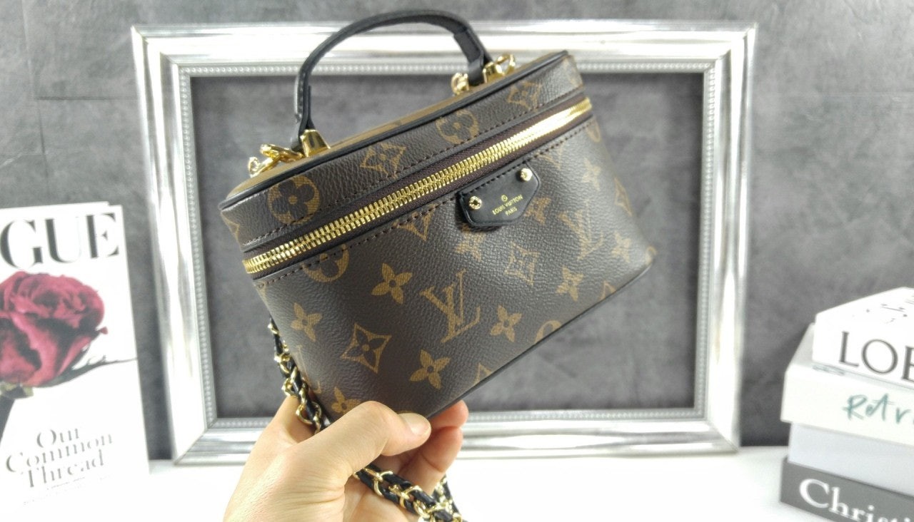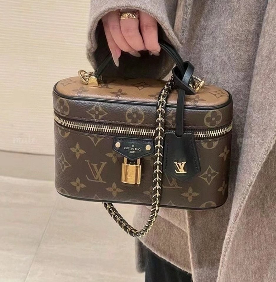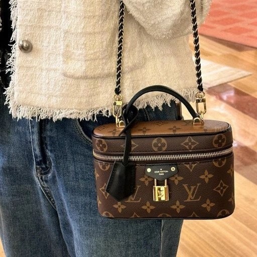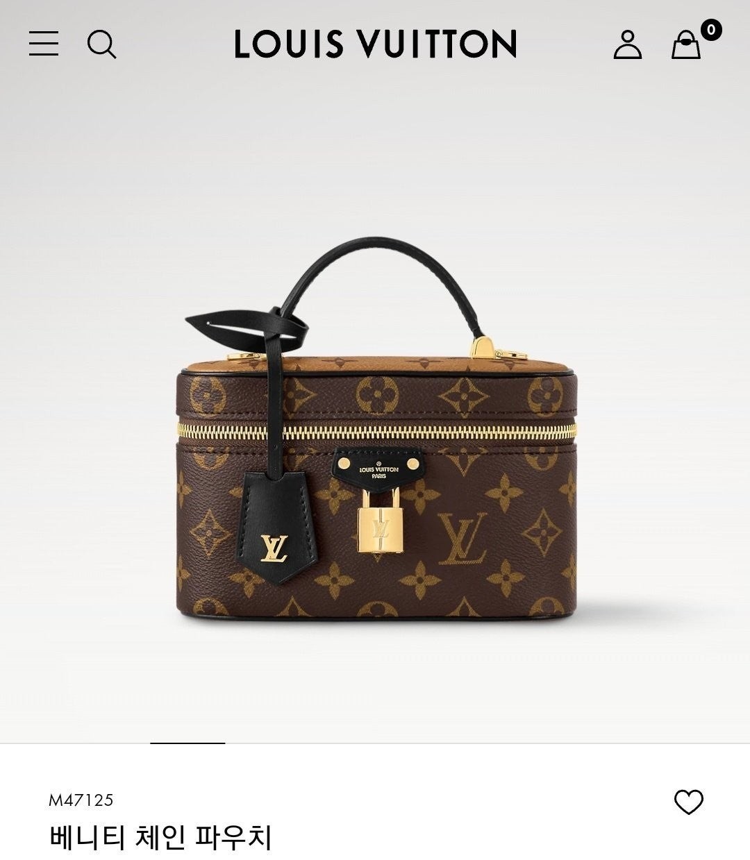 유서 깊은 베니티 케이스에서 영감을 받아 여행의 정취를 담아낸 베니티 체인 파우치. 모노그램 캔버스 소재. 가죽 소재의 트리밍을 더한 상단 핸들과 탈착형 브레이디드 체인이 조화를 이루는 슬림한 라인의 세련된 디자인. LV가 새겨진 패드락, 가죽 키 벨 등 다양한 시그니처 디테일.