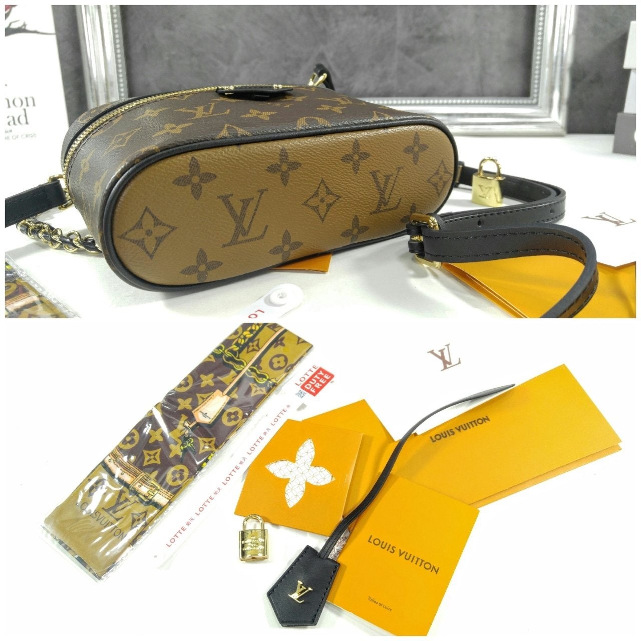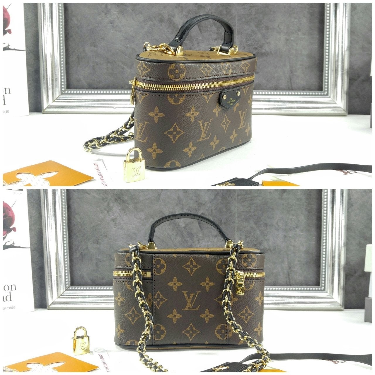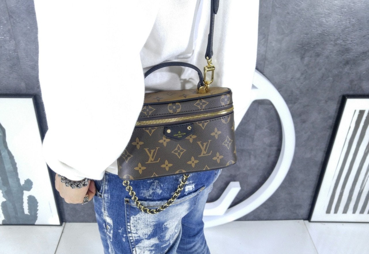 유서 깊은 베니티 케이스에서 영감을 받아 여행의 정취를 담아낸 베니티 체인 파우치. 모노그램 캔버스 소재. 가죽 소재의 트리밍을 더한 상단 핸들과 탈착형 브레이디드 체인이 조화를 이루는 슬림한 라인의 세련된 디자인. LV가 새겨진 패드락, 가죽 키 벨 등 다양한 시그니처 디테일.