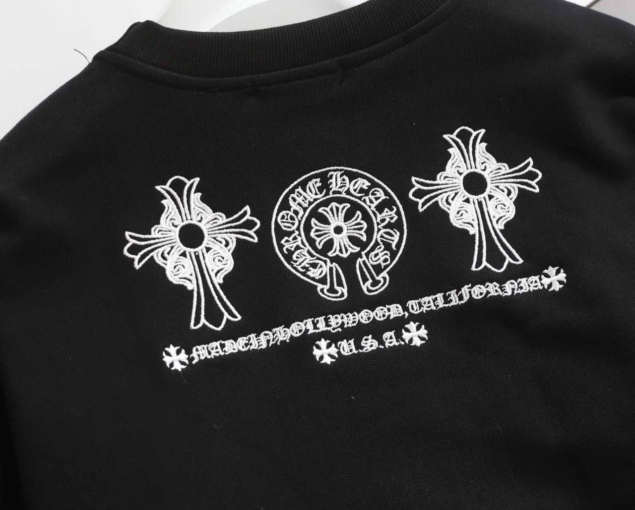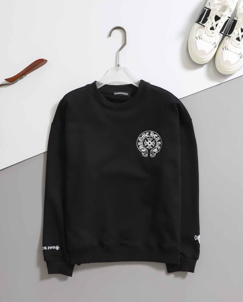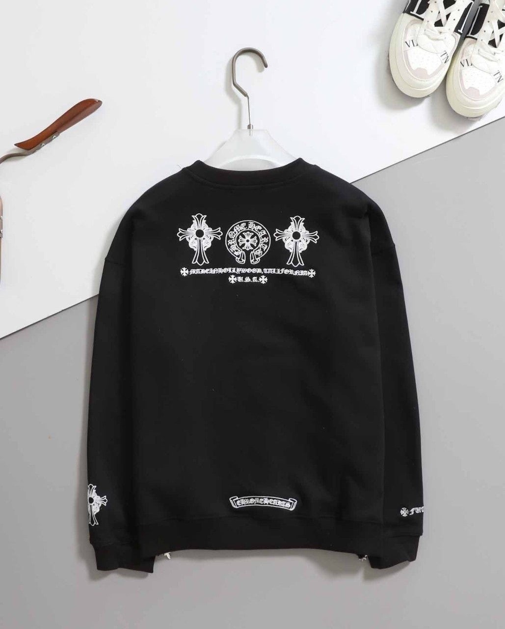 - 상의 전면 가슴과 하의 옆면에는 브랜드의 상징적인 크로스 로고가 특징입니다.