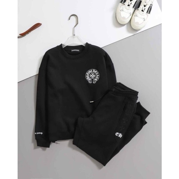 - 그레이 색상의 긴팔 맨투맨과 조거팬츠로 구성된 세트입니다.