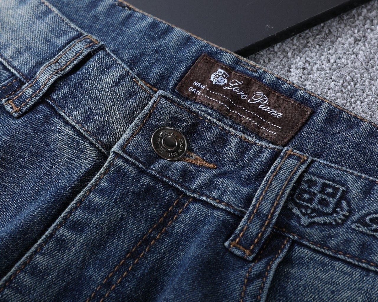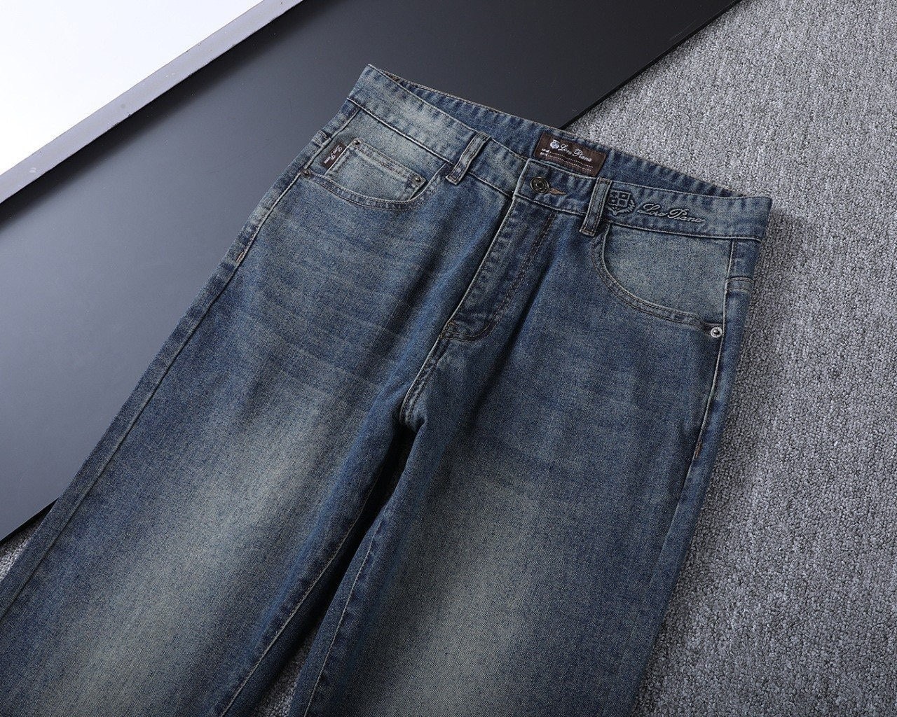 로* 피아나 수입 3D엠보 블랙패치 데님팬츠