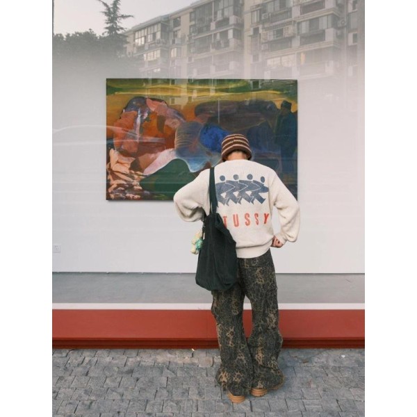 •스*US**(스투*)의 SURFMAN ICON 코튼 린넨 크루넥 니트로, 등판에 로고 프린트가 들어간 제품입니다. 오리지널을 구입해 맞춤 염색한 원사를 사용했으며, 리넨(아마)과 면의 혼방 원단으로 제작되어 피부에 바로 닿아도 까칠하지 않습니다. 소매와 밑단은 촘촘한 편직으로 탄탄하게 마감되어 형태가 잘 잡히고, 전체적으로 질감이 부드러워 손으로 만졌을 때 섬세한 촉감이 느껴집니다. 세탁라벨·넥라벨·행택 등 세 가지 표시는 모두 금형 제작한 맞춤 사양이며, 등판의 로고는 환경 친화적인 고무 소재 프린트로 처리되어 있습니다. 남녀 공용 디자인입니다.