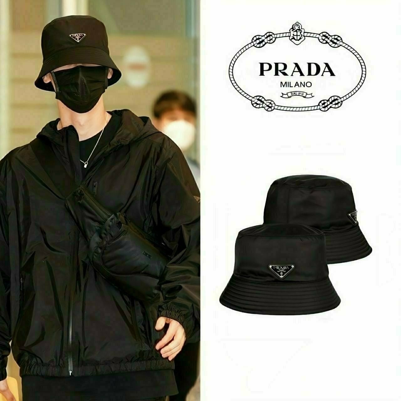 ✅심플한 블랙 버킷햇에 프** 특유의 삼각 플라크 로고를 포인트로 준 제품입니다.☆☆