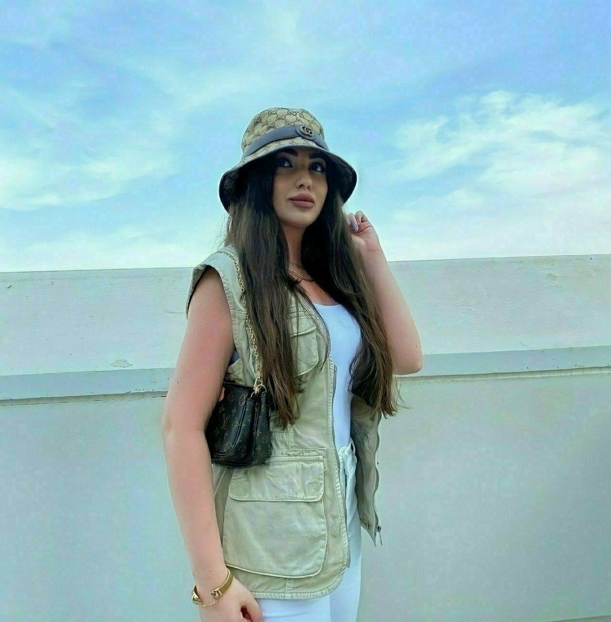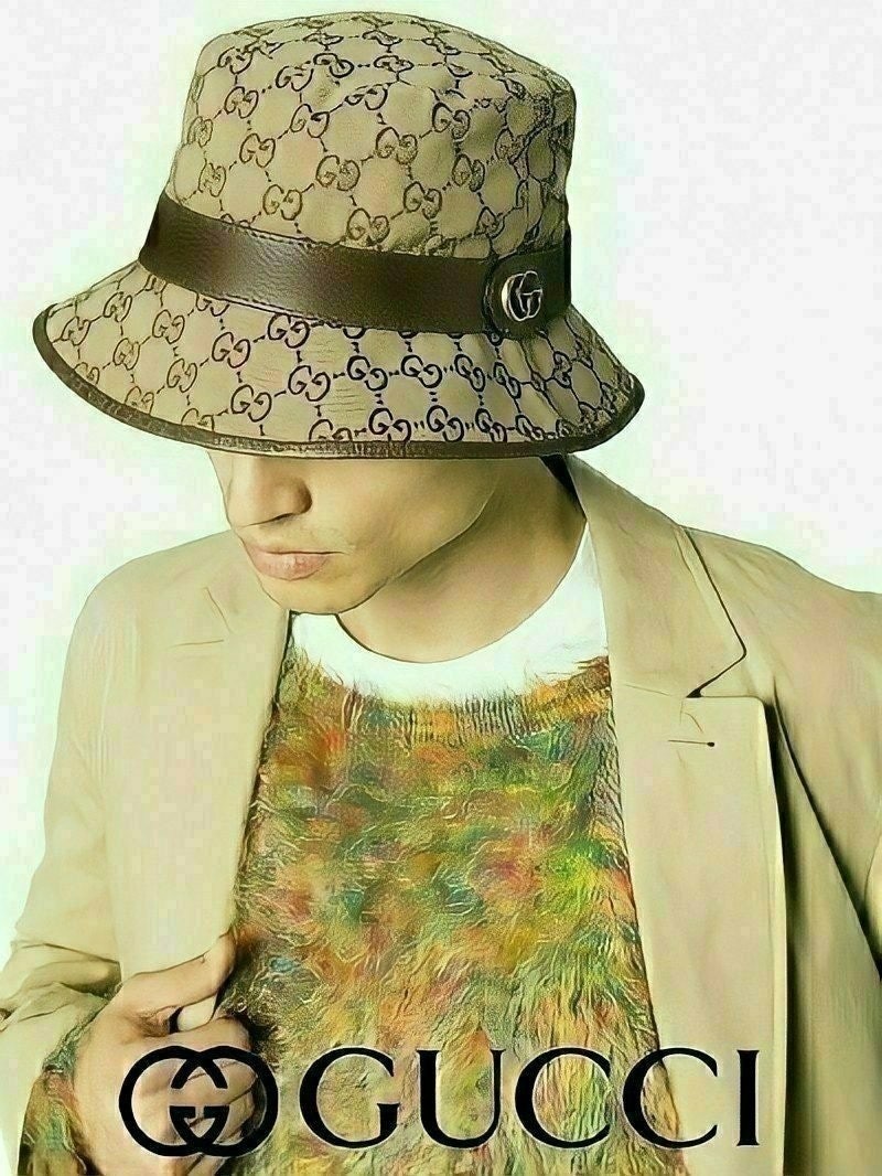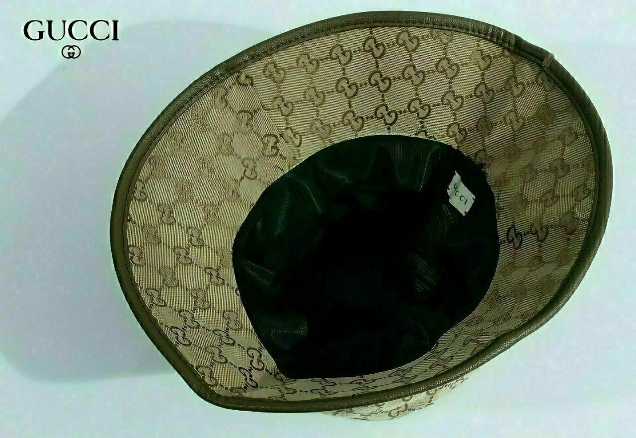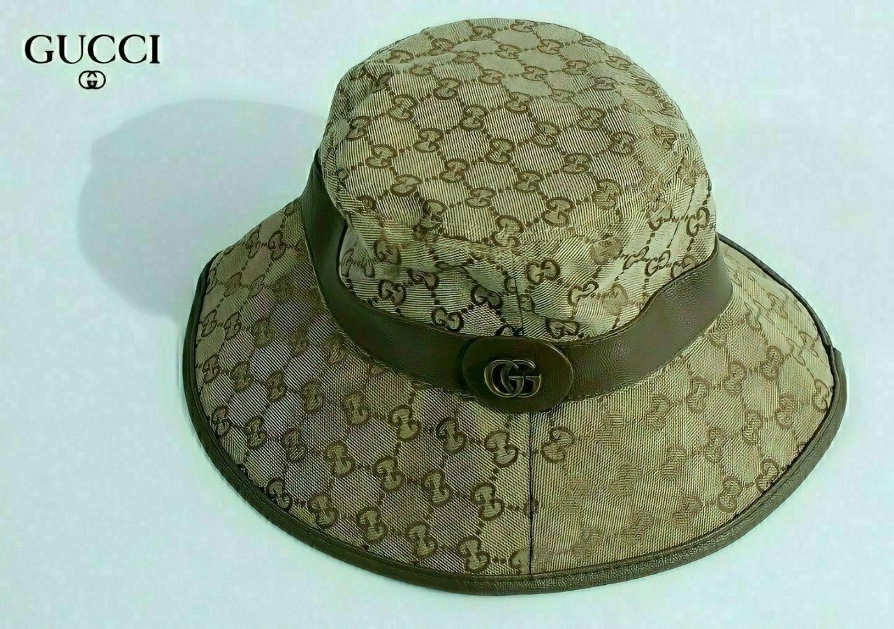✅베이직한 기본 캔버스 버킷햇에 브라운 가죽 트리밍,더블G 골드로고 포인트를 준 제품으로 다양한 룩에도 잘 어울리는 아이템입니다.????????