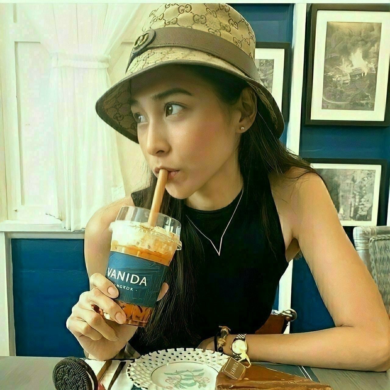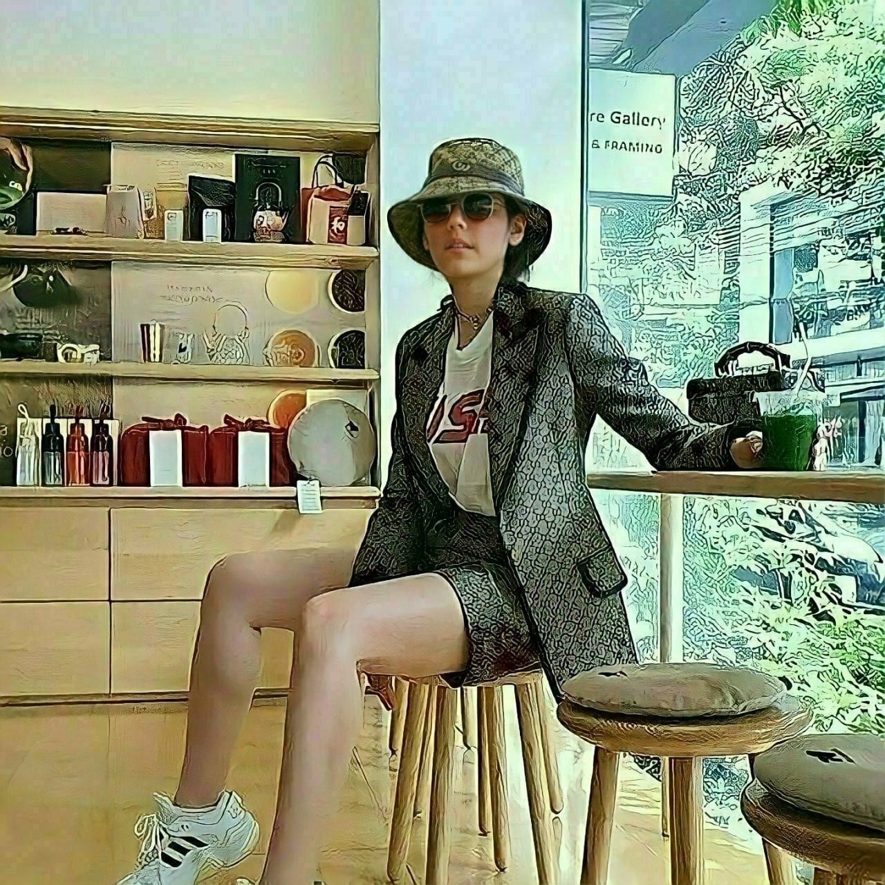 ✅구*(G♡cci)의 빈티지한 느낌의 베이지 색상의 GG캔버스 소재의 버킷햇입니다.????????