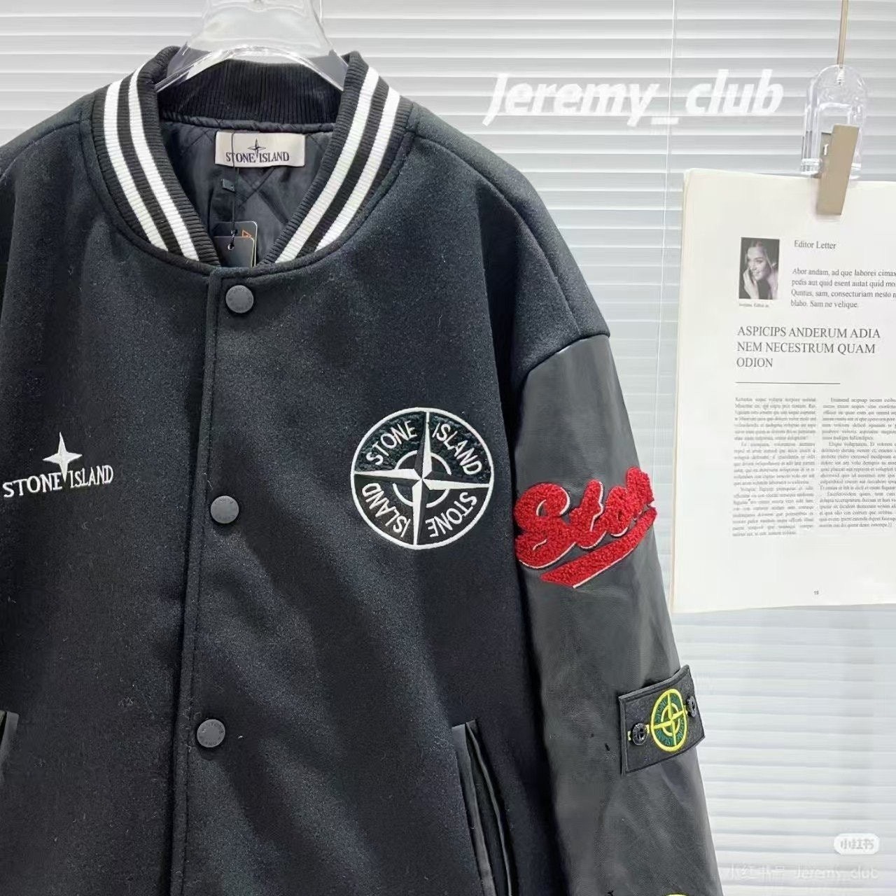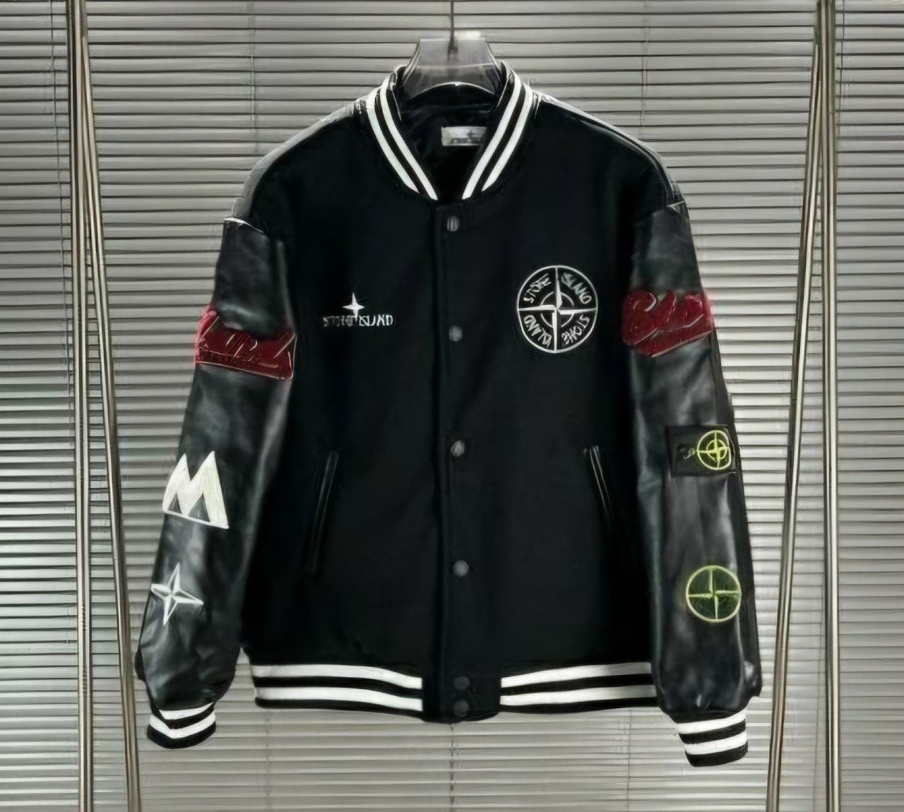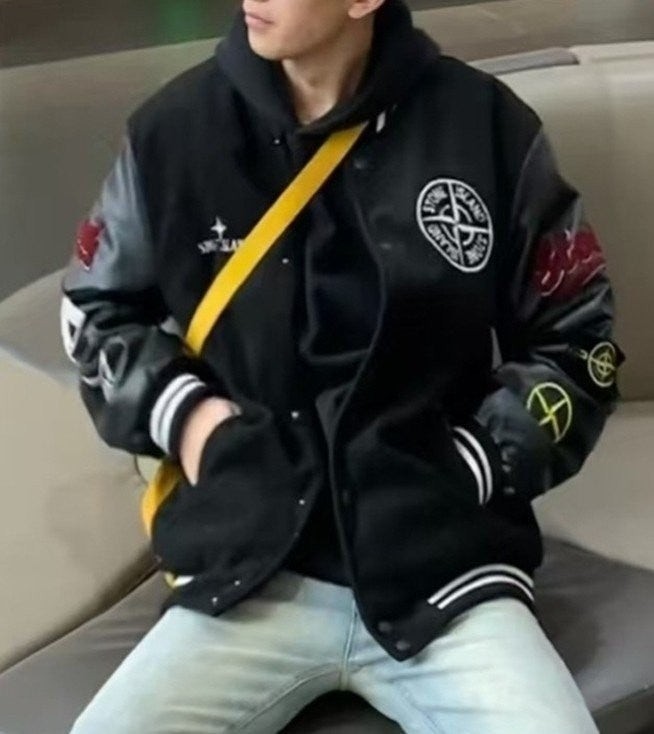 스* 로고 자수 바시티 레더 봄버 자켓 수입최고급