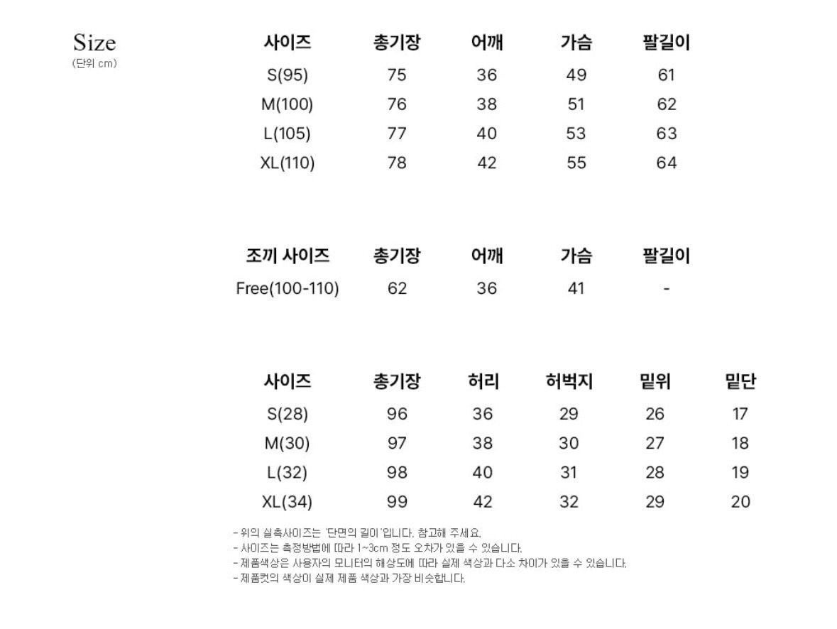 사이즈 - S(95), M(100), L(105), XL(110)