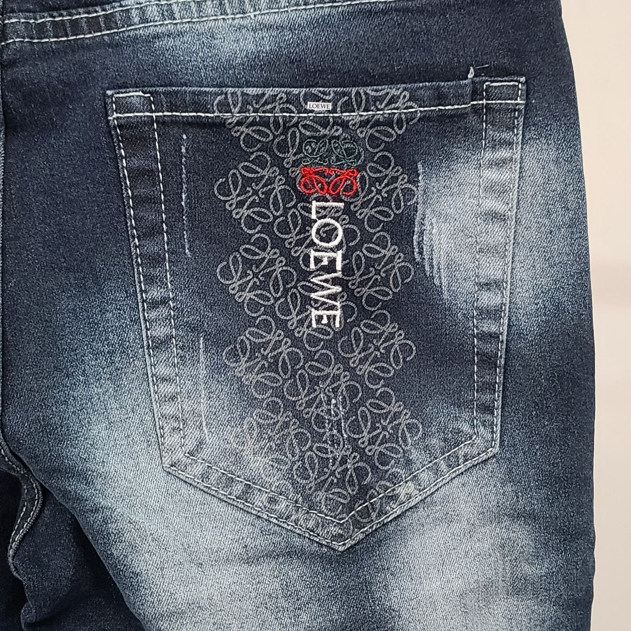 로** 그래픽 아나그램 워싱 청바지