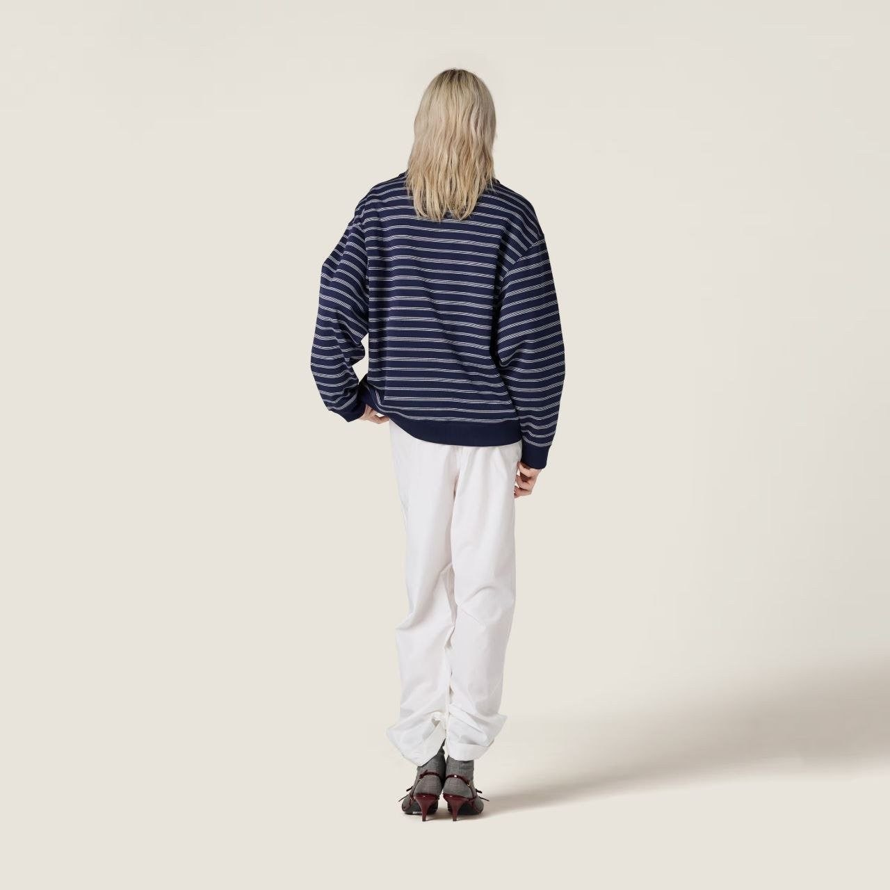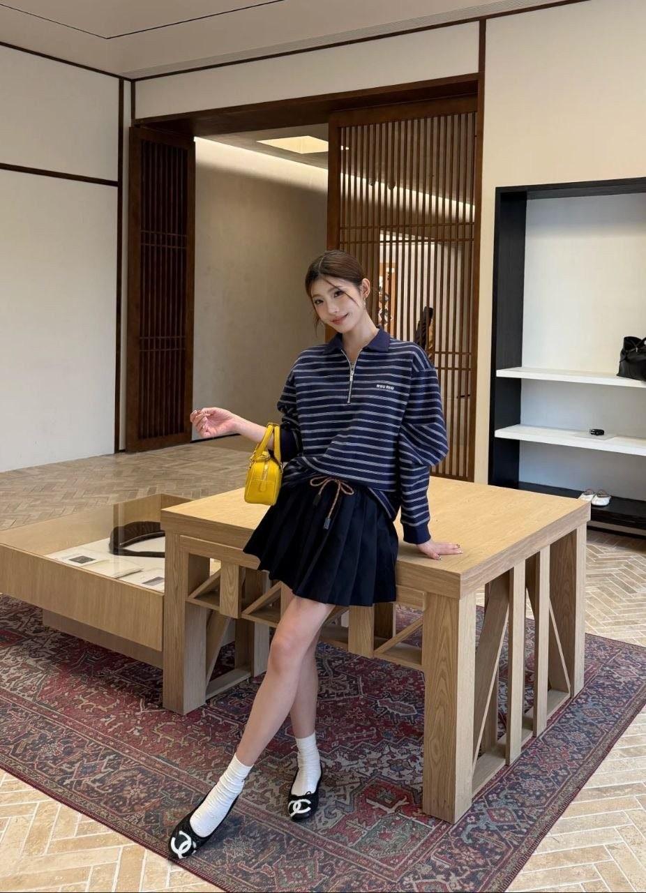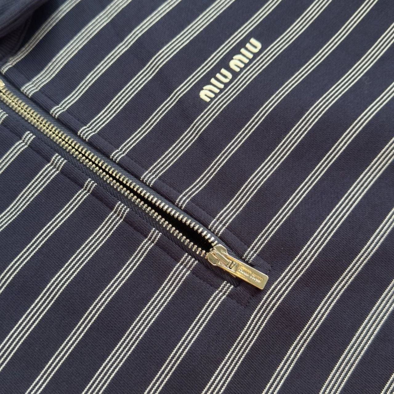 •원단은 자유 대원형 자카드 편직기로 별도 주문 편직했으며, 24수+7수 정교면(콤드 코튼) 혼용의 루프백 스웻 원단(면 95% + 스판 5%), 중량 380g을 사용했습니다. 매치되는 2×2 원통 립도 380g으로 균형 있게 적용했습니다. 자수는 수입 자수기(BAILINGDA)로 진행했으며, 전용 이니셜 지퍼를 사용했습니다. 모든 제품은 순수 수작업으로 재단하고, 각 한 벌마다 스트라이프 패턴을 맞춰 위치 재단을 진행해 원단 소모가 상당히 큽니다. 특정 세 가지 태그(세탁 라벨 포함)가 있습니다.