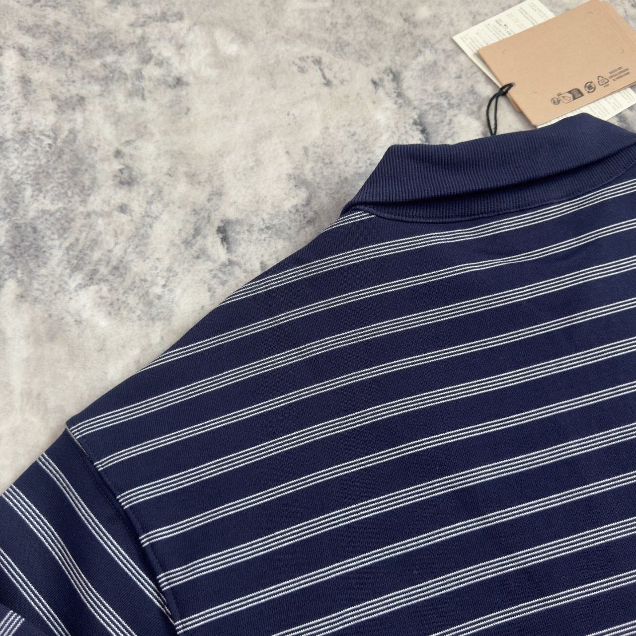 •스트라이프 디테일과 릴랙스드한 박시 핏이 조화를 이루는 폴로 셔츠 입니다. 리브 니트 칼라와 커프스가 구조적인 라인을 완성하며, 자수 로고가 고급스러운 마무리를 선사합니다.