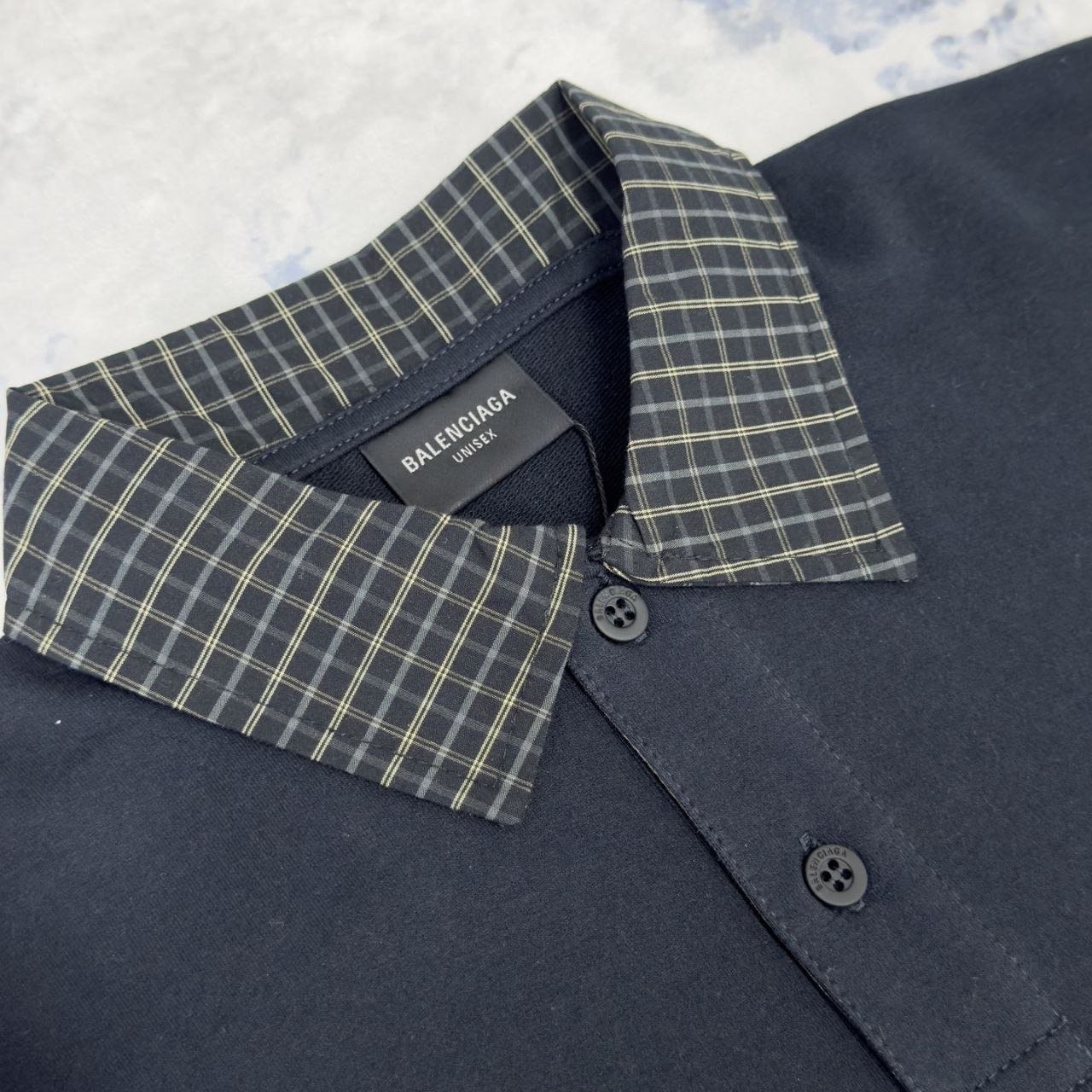 •원단은 특수 염색된 32S + 21S 단일 평직 원단으로, 중량은 220g입니다. 21S 1*1 무근 리브를 사용하였으며, 고속 제단 색직기와 맞춤 직조된 체크 패턴의 리브 원단이 적용되었습니다. 자수는 수입된 바이링다 자수 기계를 사용하여 여러 차례 조정 후 타다미 매트 자수로 처리하였으며, 자수 로고 높이는 ZP과 일치합니다. 프린트는 수작업으로 진행되며, 120망 필름을 사용하여 작은 글자를 수작업으로 긁어내는 방식입니다. 빨간 원형 부분은 두꺼운 판 프린트로 5겹의 젤을 사용하였습니다. 버튼은 맞춤 제작된 합금 자수 버튼으로, 무광 롤 코팅이 되어 있으며, ZP 동일한 세 가지 태그가 부착되어 있습니다.