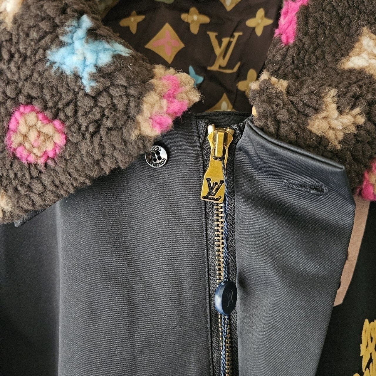 본 제품은 "루* 에비에이터 자켓 위드 모노그램 플리스 칼라 자켓 로써 정규품 동일원단을 사용해 루이비통전문제작 공장에 오더를넣어 제작한 완벽한 상품입니다. 고급스러운 무드와 핏으로 편안하게 입으실 수 있으며 국내에서 자카드 풀 오버 니트 티셔츠흉내조차 내기 힘든 디테일이며 퀄리티 자부합니다.
