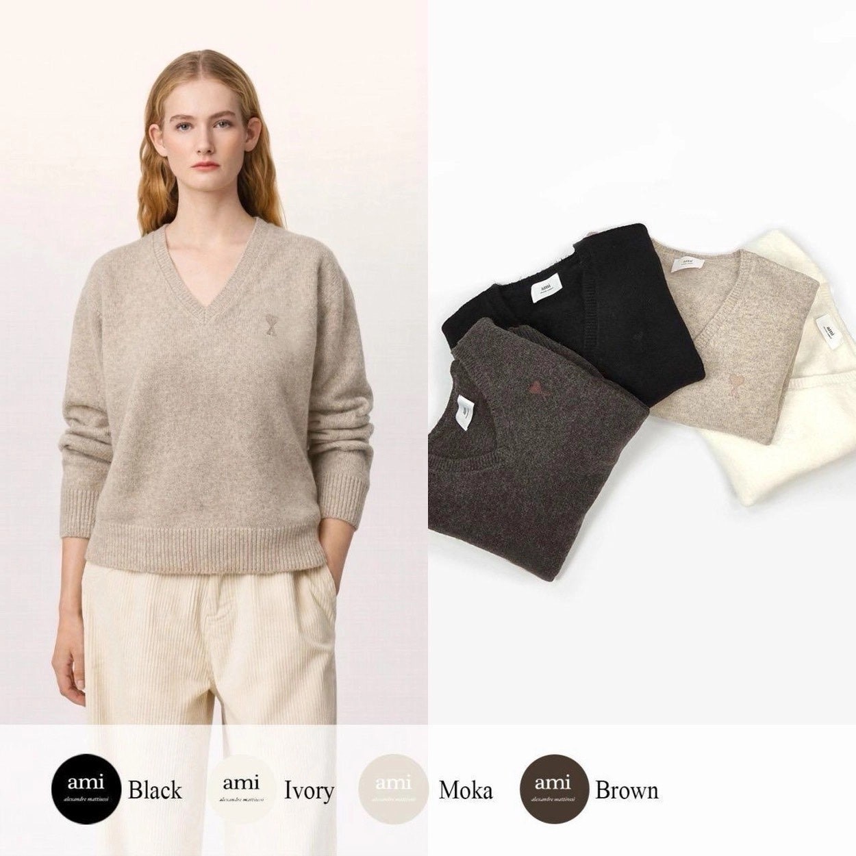 네크라인이 깊게 파인 딥 브이넥 디자인, 단독 착용 시 여성스러운 무드 강조