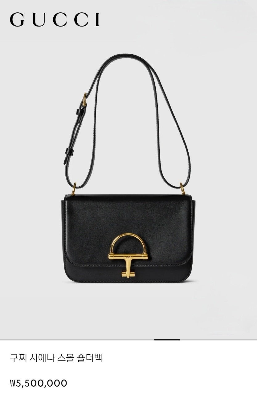 런웨이에서 새롭게 선보인 구* 시에나 스몰 숄더백으로, 구* 특유의 시그니처 코드인 홀스빗을 혁신적으로 재해석한 아이템. 파인 스무드 레더로 제작하여 구조감이 돋보이는 실루엣을 1970년도에 처음으로 소개한 구*만의 디테일인 하프 홀스빗 클래스프로 강조함. 골드 톤 메탈 장식으로 스타일을 완성했으며, 안감을 댄 내부에는 세 개의 거싯과 두 개의 지퍼 포켓이 있음.
