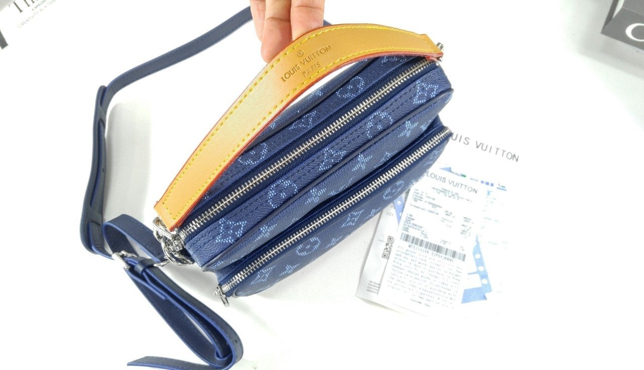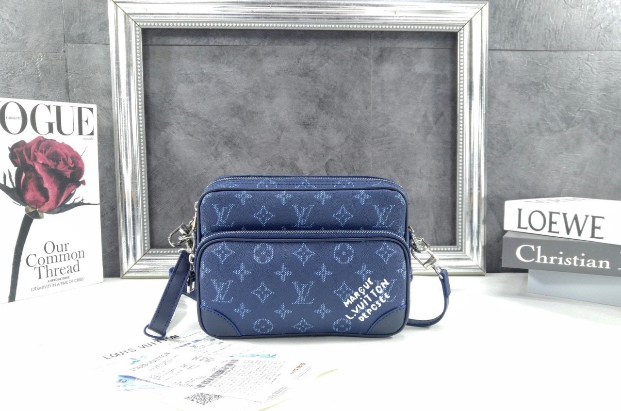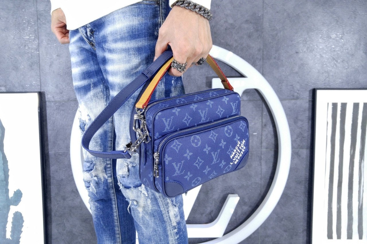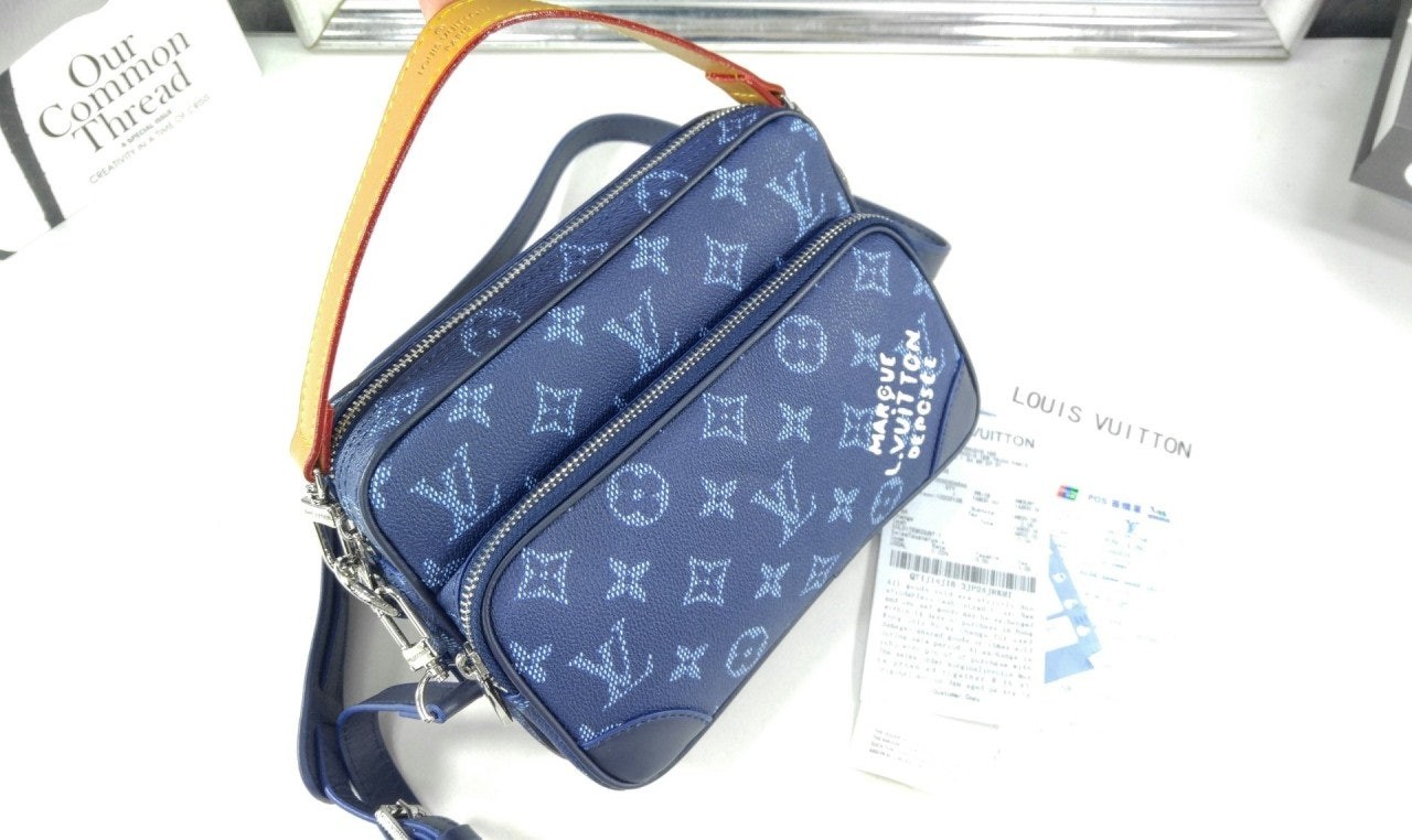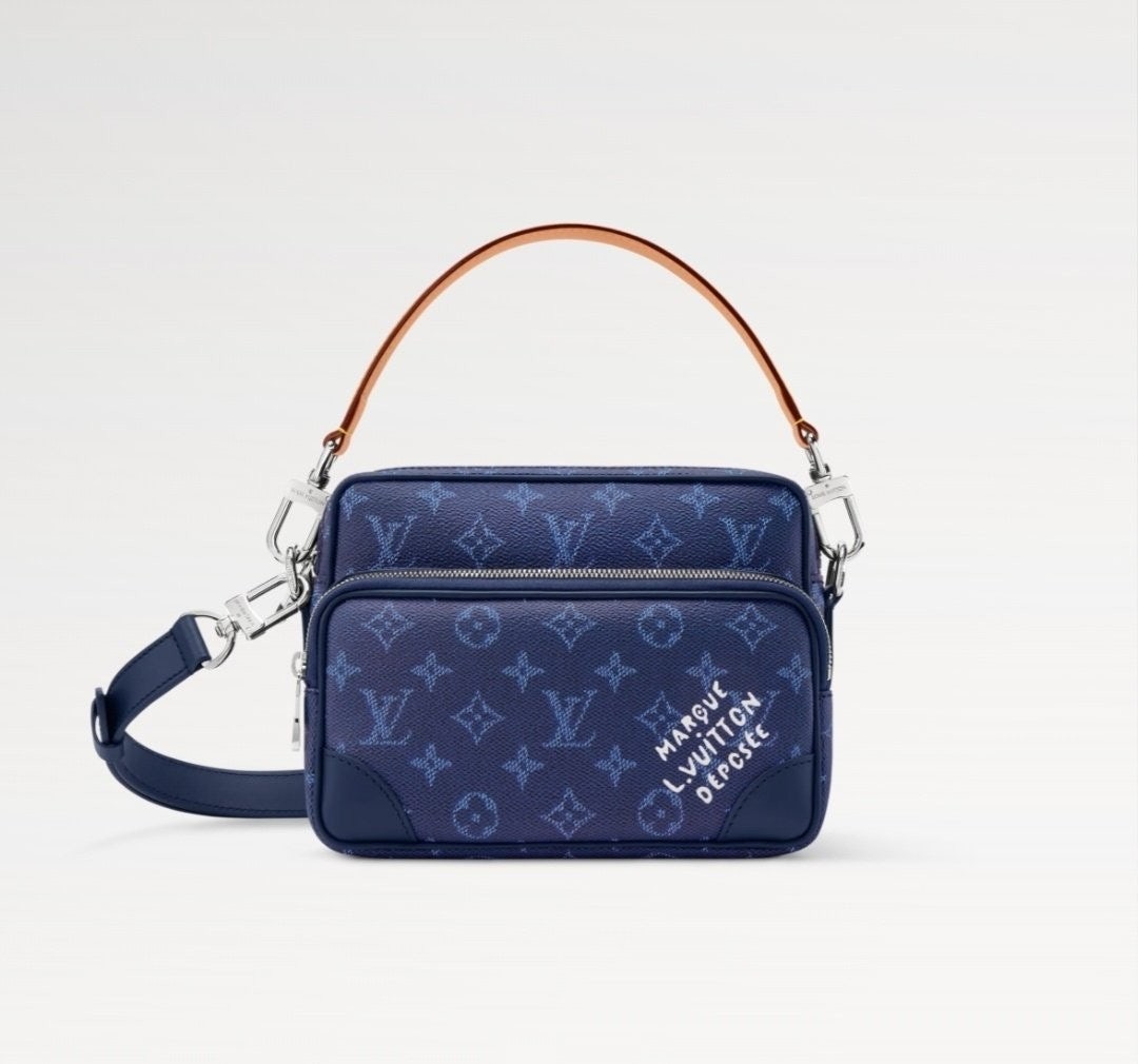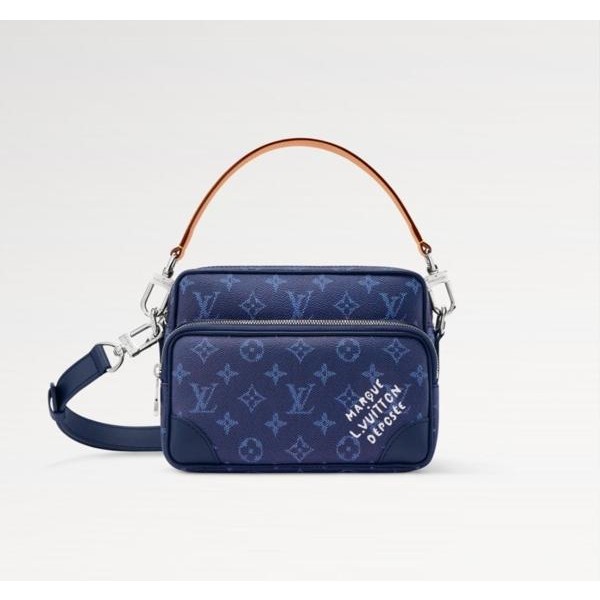 모노그램 헤리티지 캔버스 소재로 제작된 레트로풍 닐 크로스백은 메인 수납공간, 내부 플랫 포켓, 그리고 지퍼식 전면 포켓으로 구성되어 있습니다. 탈부착 가능한 가죽 탑 핸들과 탈착 가능한 숄더 스트랩은 다양한 수납공간을 제공합니다. 앞면 포켓에는 빈티지 "Marque L. Vuitton Déposée" 시그니처가 프린트되어 있습니다.