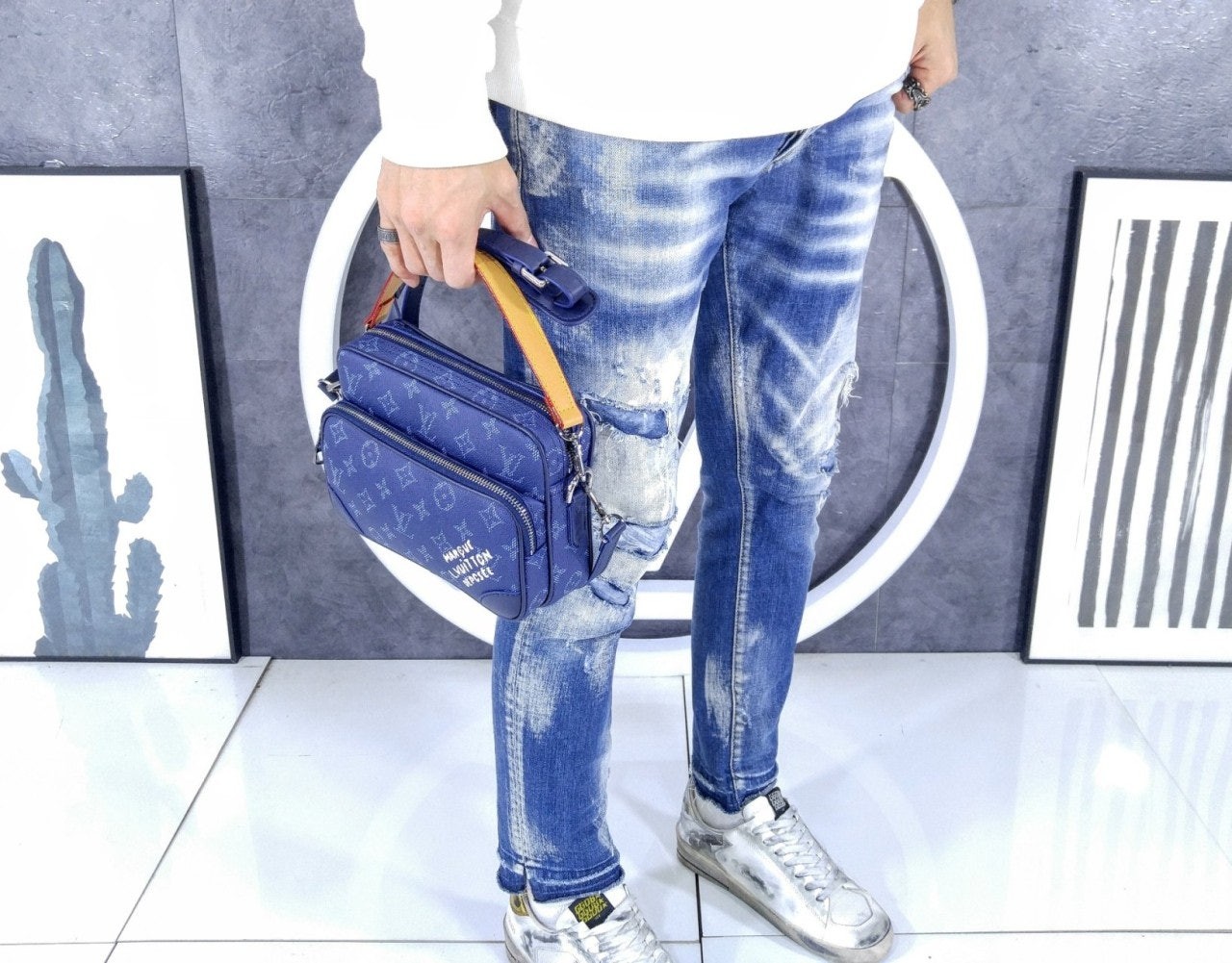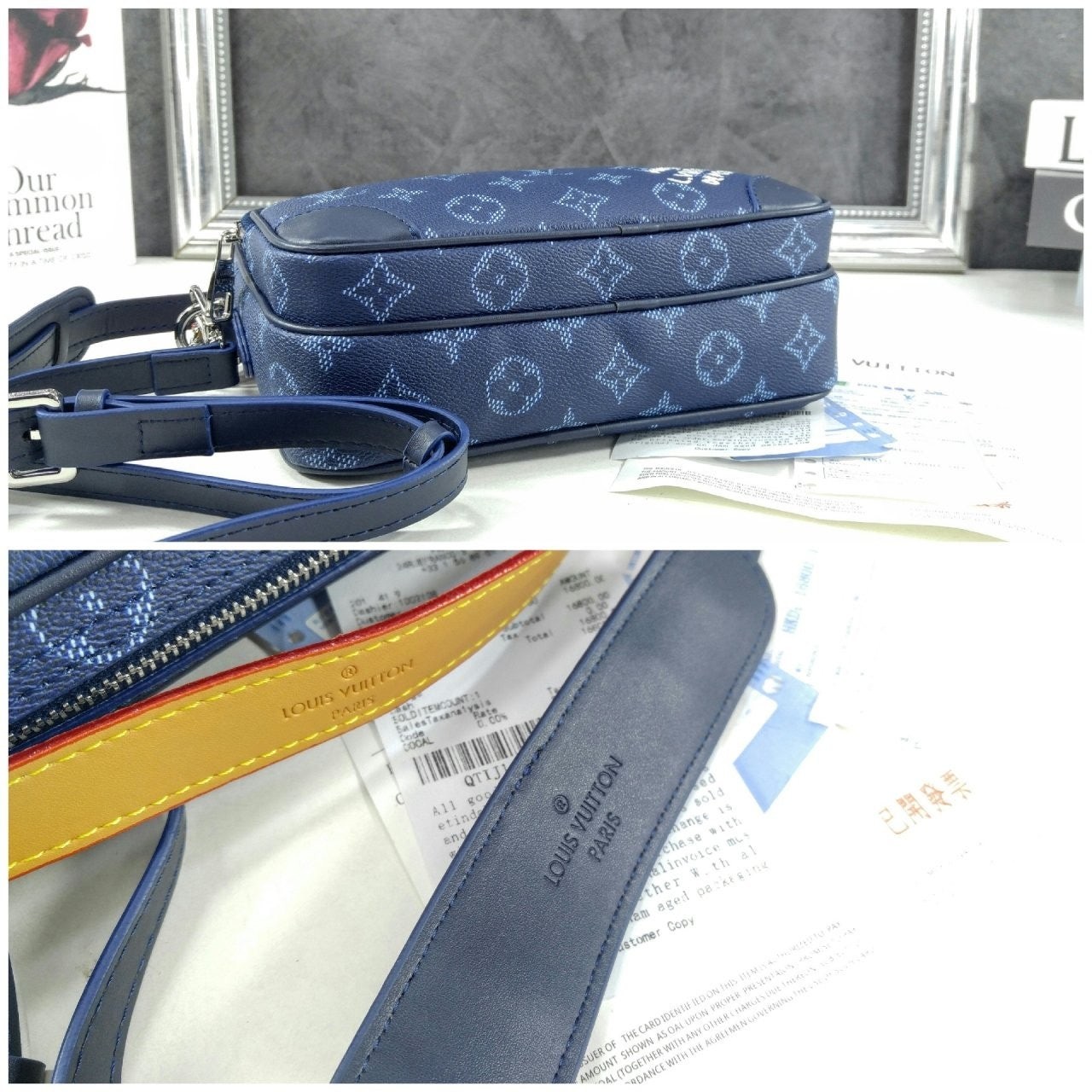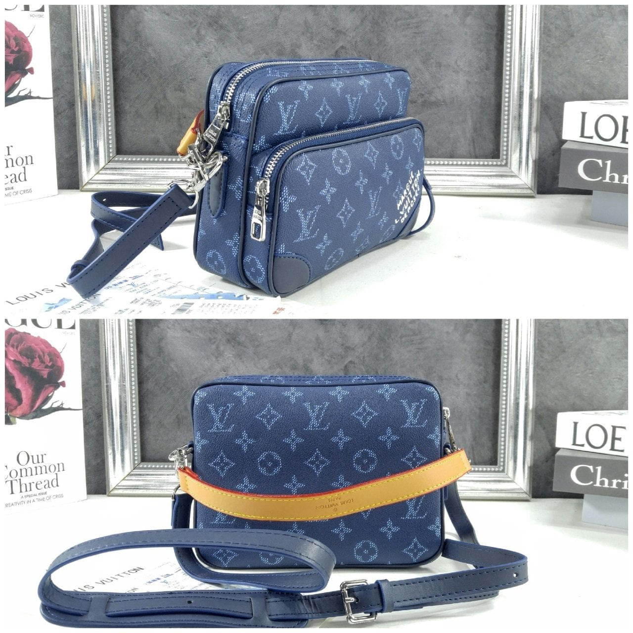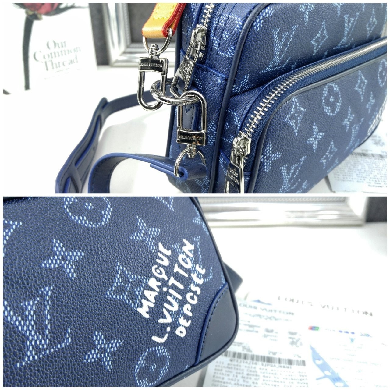 모노그램 헤리티지 캔버스 소재로 제작된 레트로풍 닐 크로스백은 메인 수납공간, 내부 플랫 포켓, 그리고 지퍼식 전면 포켓으로 구성되어 있습니다. 탈부착 가능한 가죽 탑 핸들과 탈착 가능한 숄더 스트랩은 다양한 수납공간을 제공합니다. 앞면 포켓에는 빈티지 "Marque L. Vuitton Déposée" 시그니처가 프린트되어 있습니다.