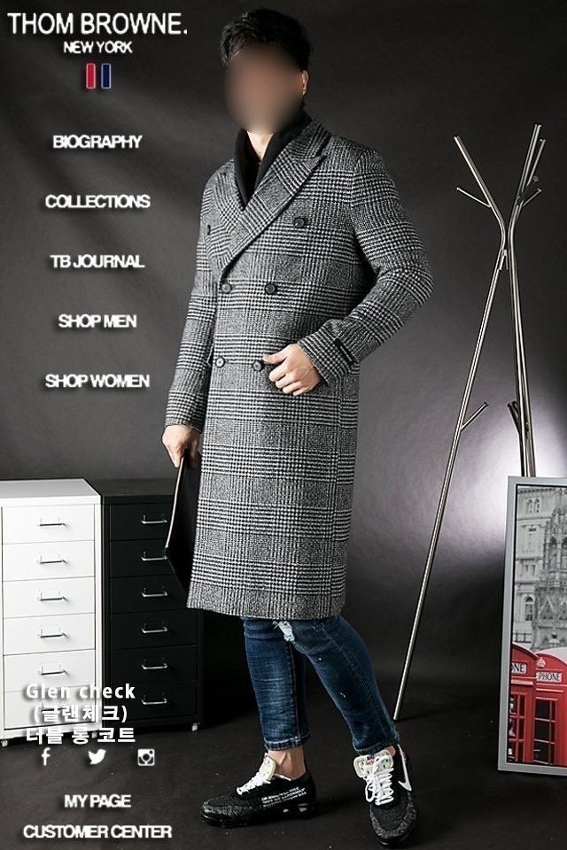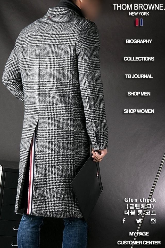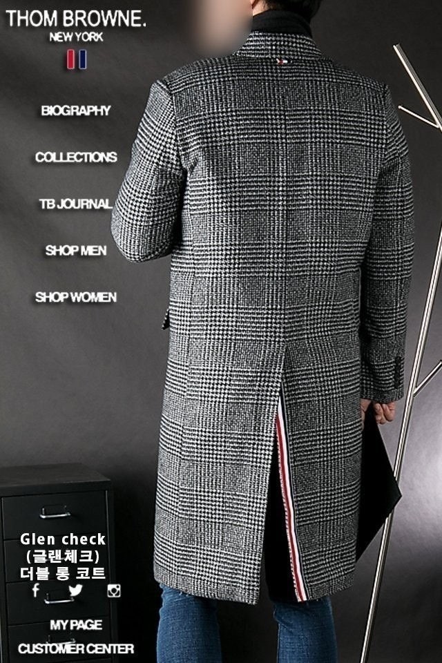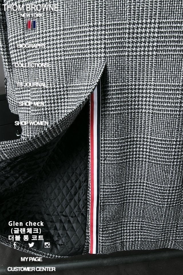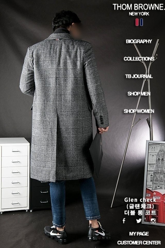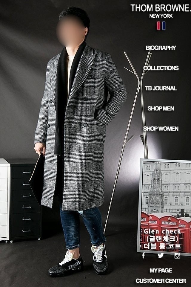 "Glen Check 더블 롱 코트"는 톰*의 시그니처 체크인 글렌체크 디자인으로 코트의생명인 어깨라인과 라펠(카라)라인의 실루엣이 전체적으로 깔끔한 핏을 완성시켜 드립니다. 하프롱에 가까운 무릅정도 까지 오는 기장으로 활동하시기 전혀 불편함이 없는 디자인 입니다.