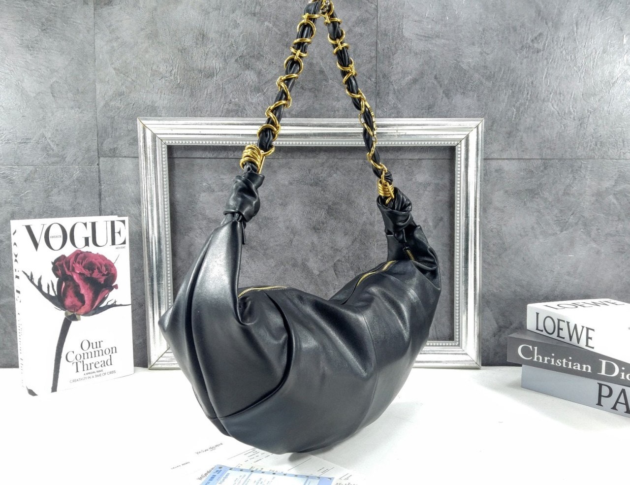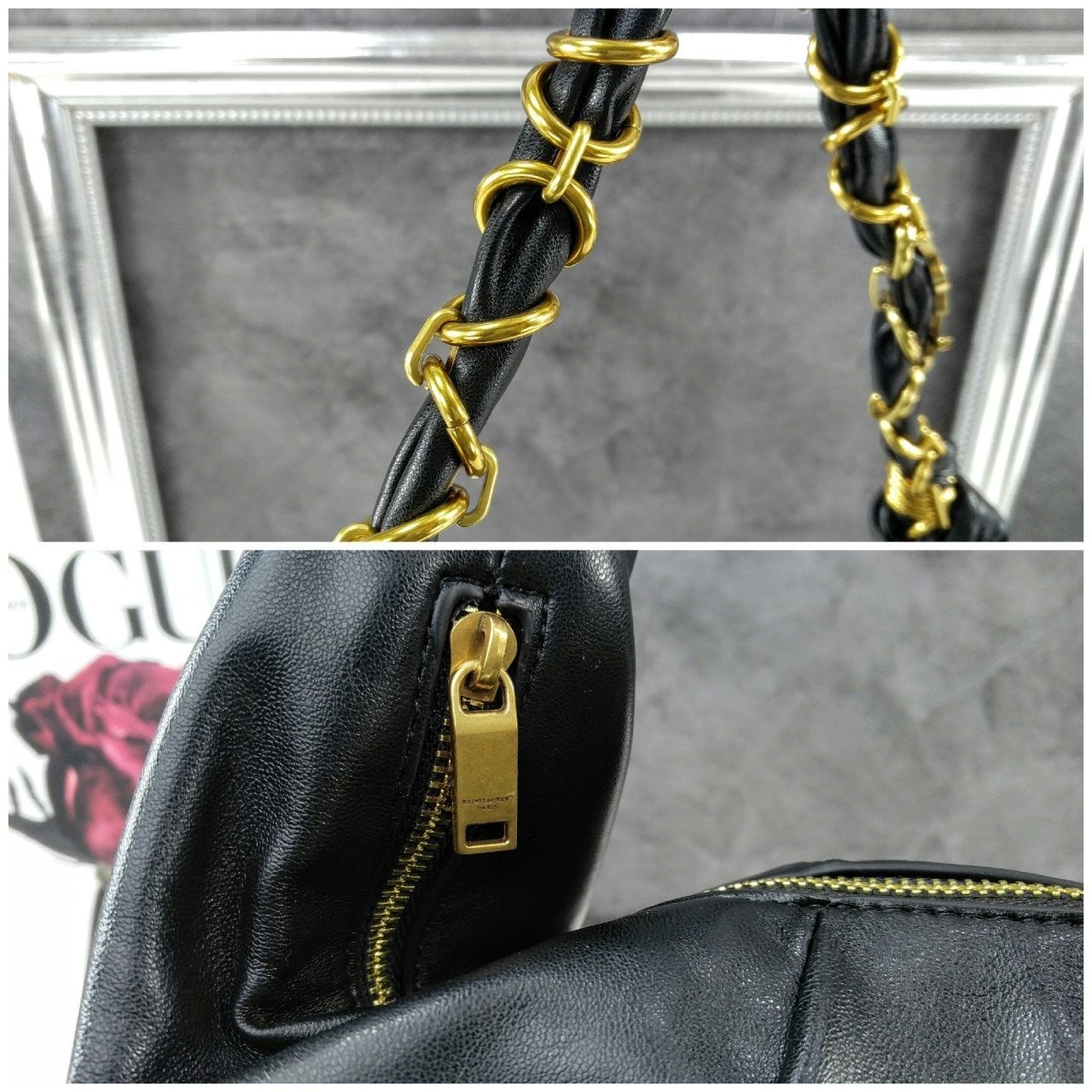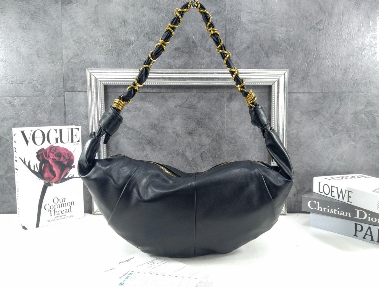 호보백, 램스킨 소재, 우븐 CASSANDRE 주얼리 체인 스트랩.