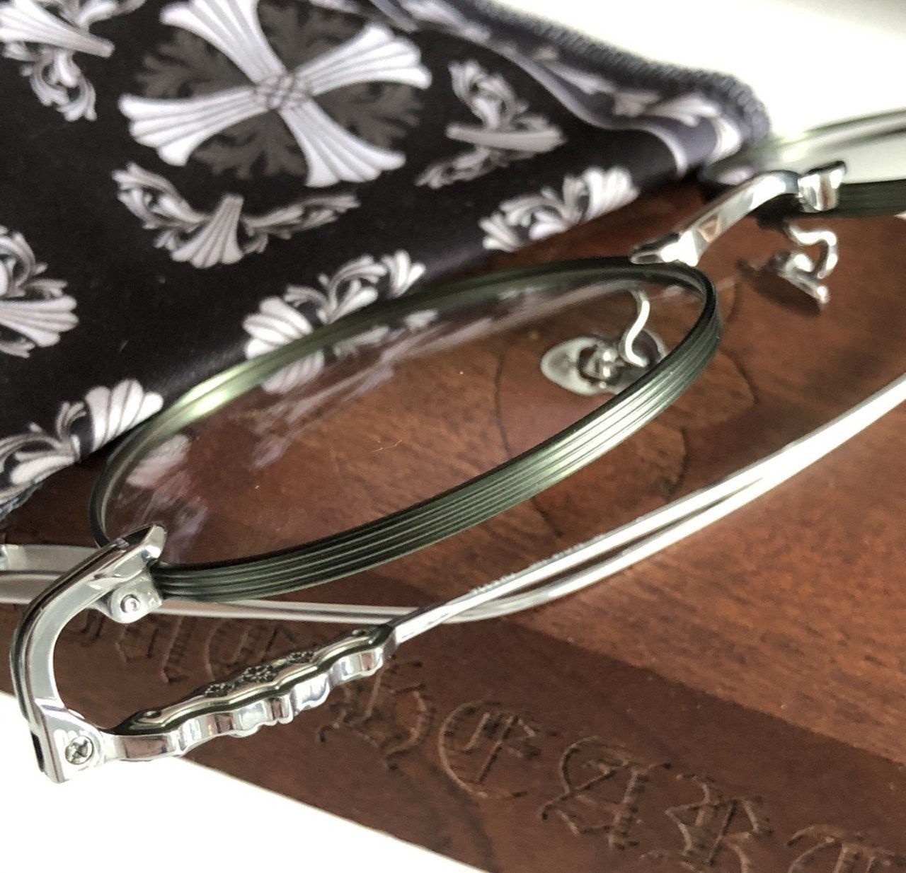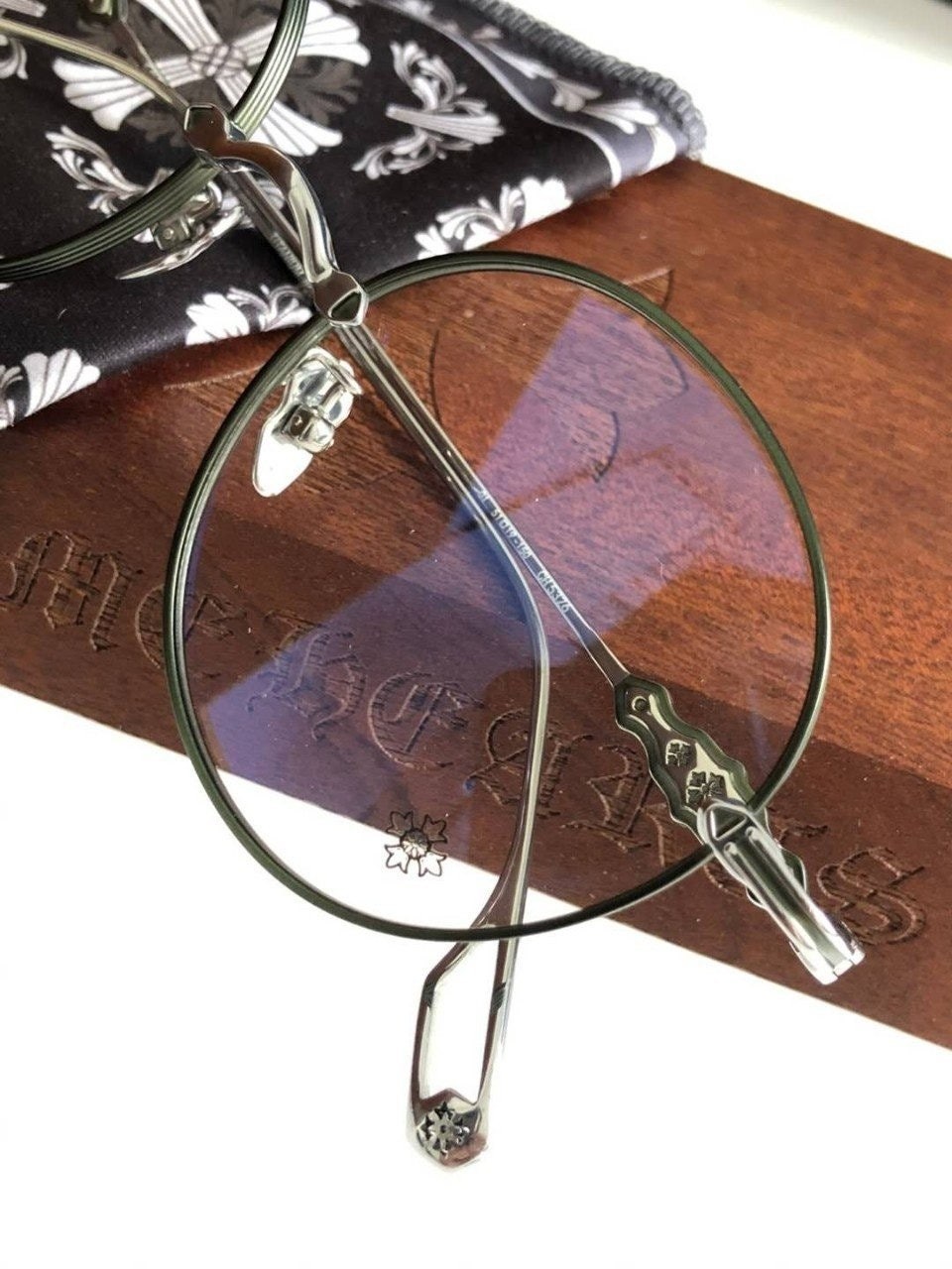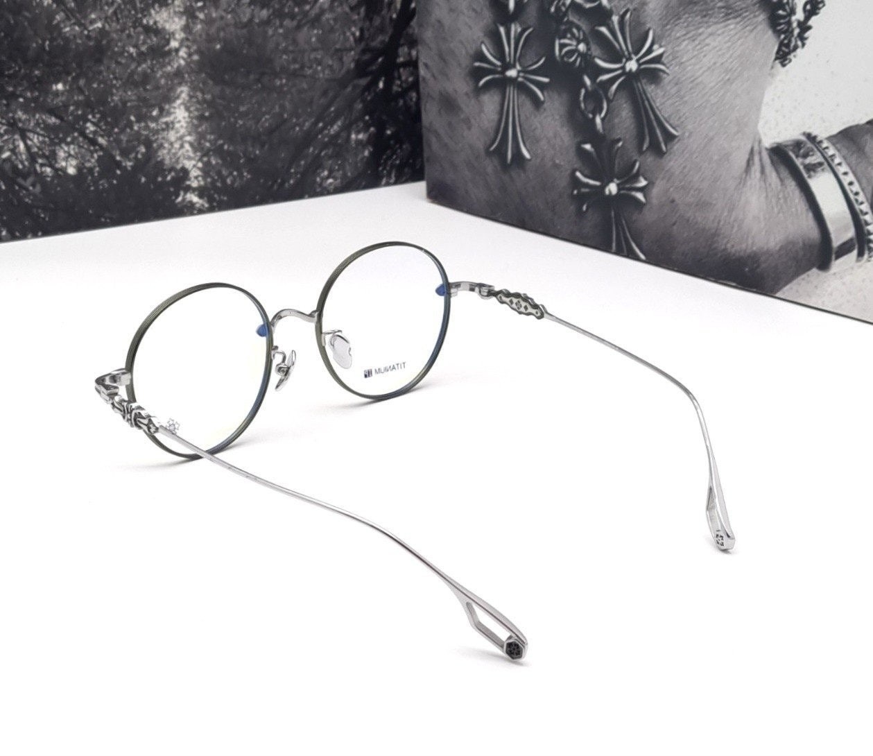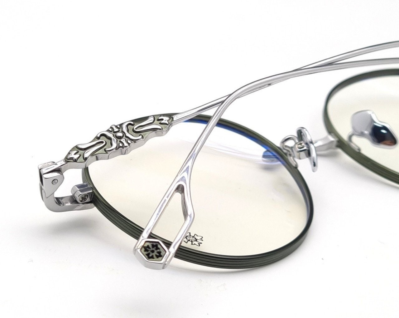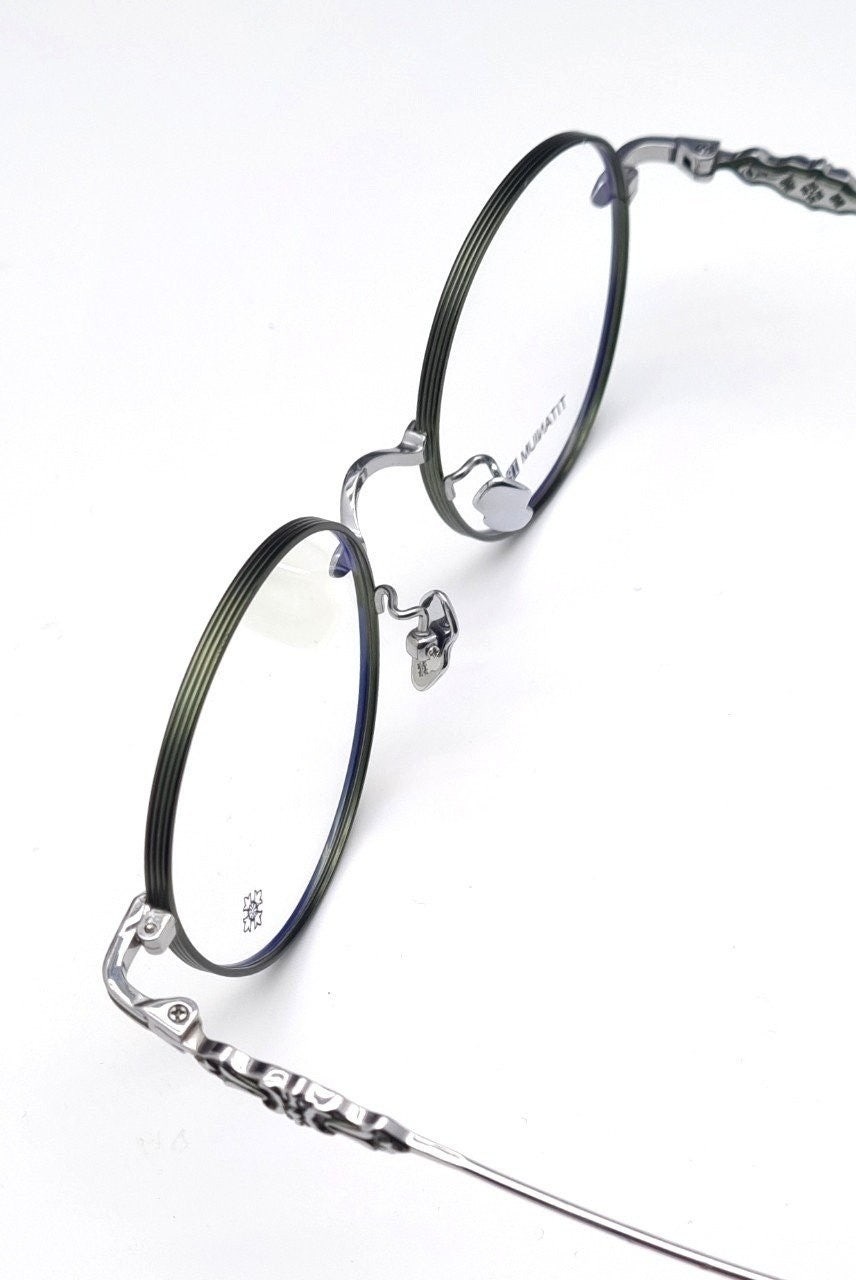 테두리 은은한 에메랄드 그린색상과 옆라인 시그니처인 중세문양 및 템플팁의 디테일로 착용시 지적이면서 섹시해보여요^^