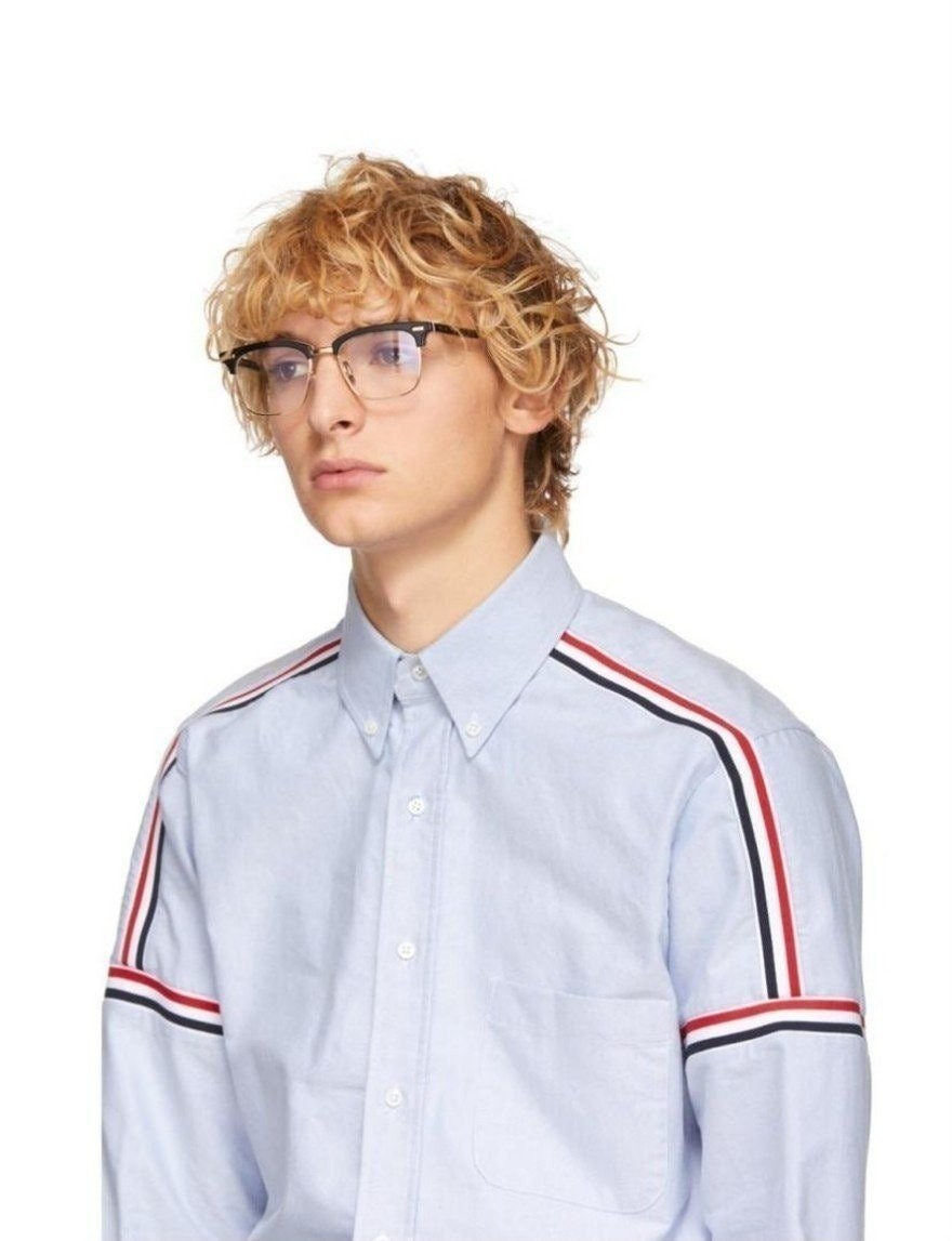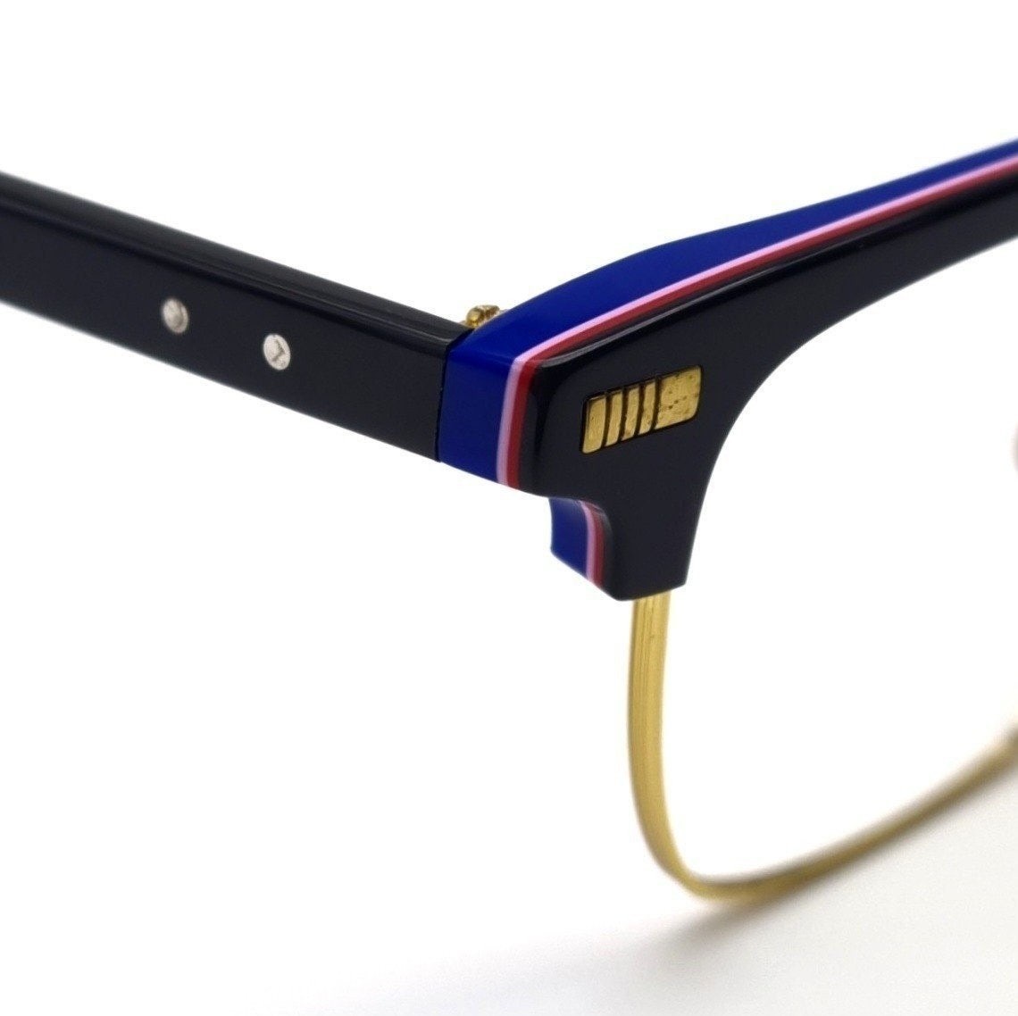 심플하면서 스타일 리쉬한 제품으로 블랙컬러의 아세테이트와 골드컬러의 티탄소재가 콤비네이션된 하금테 제품