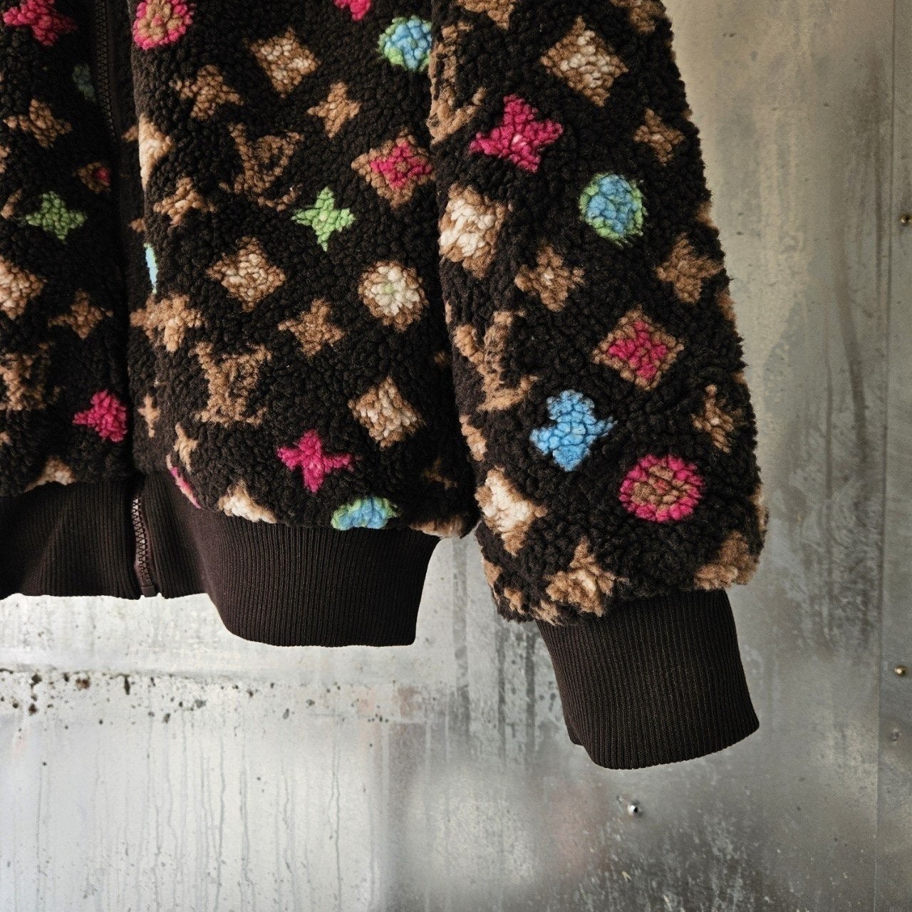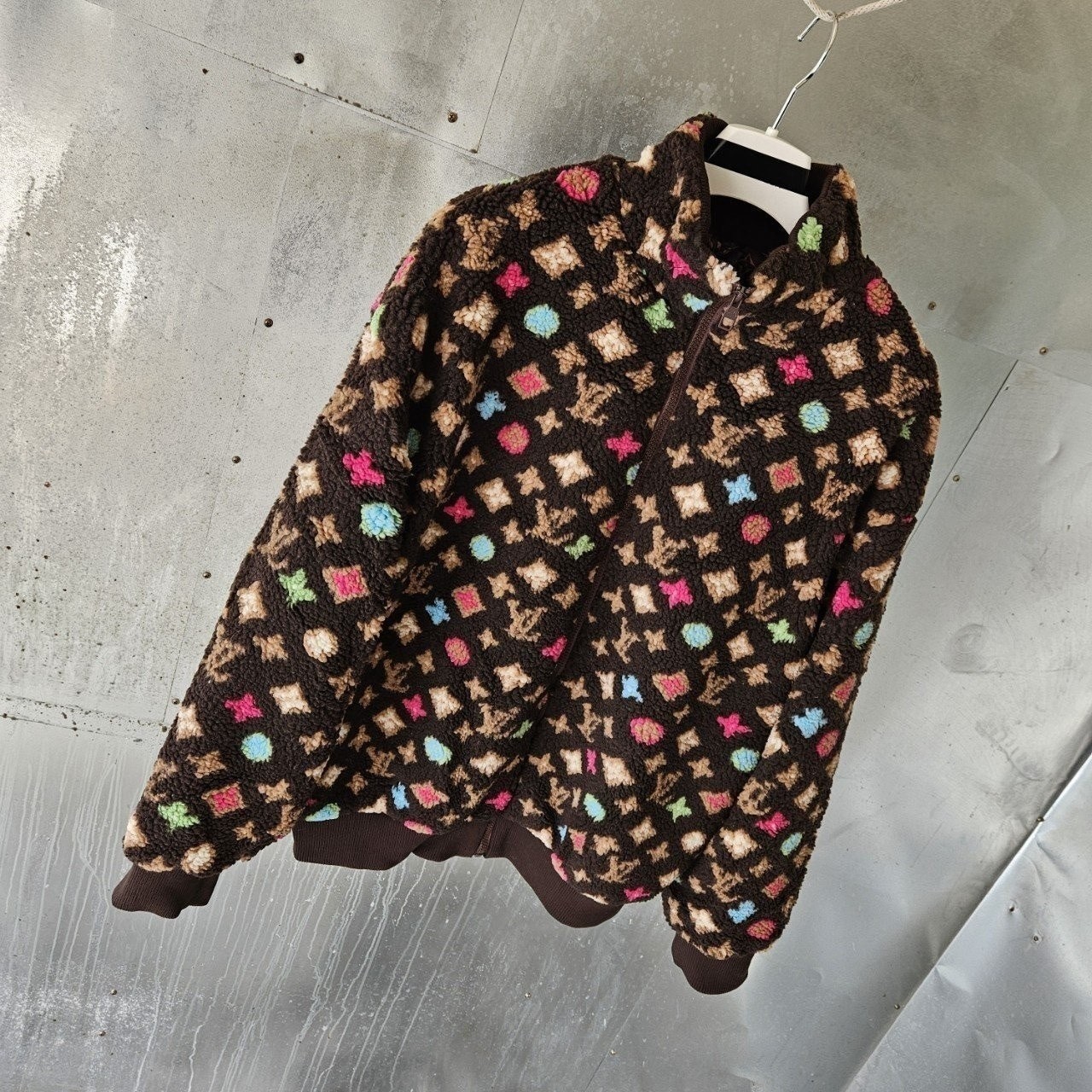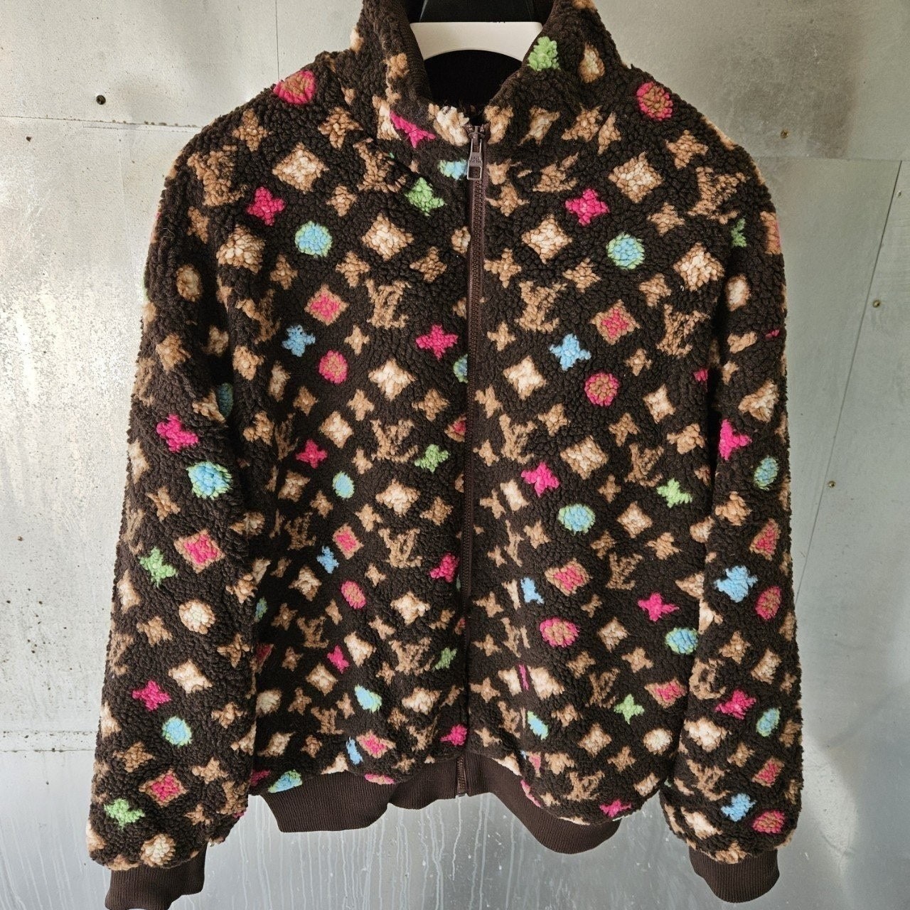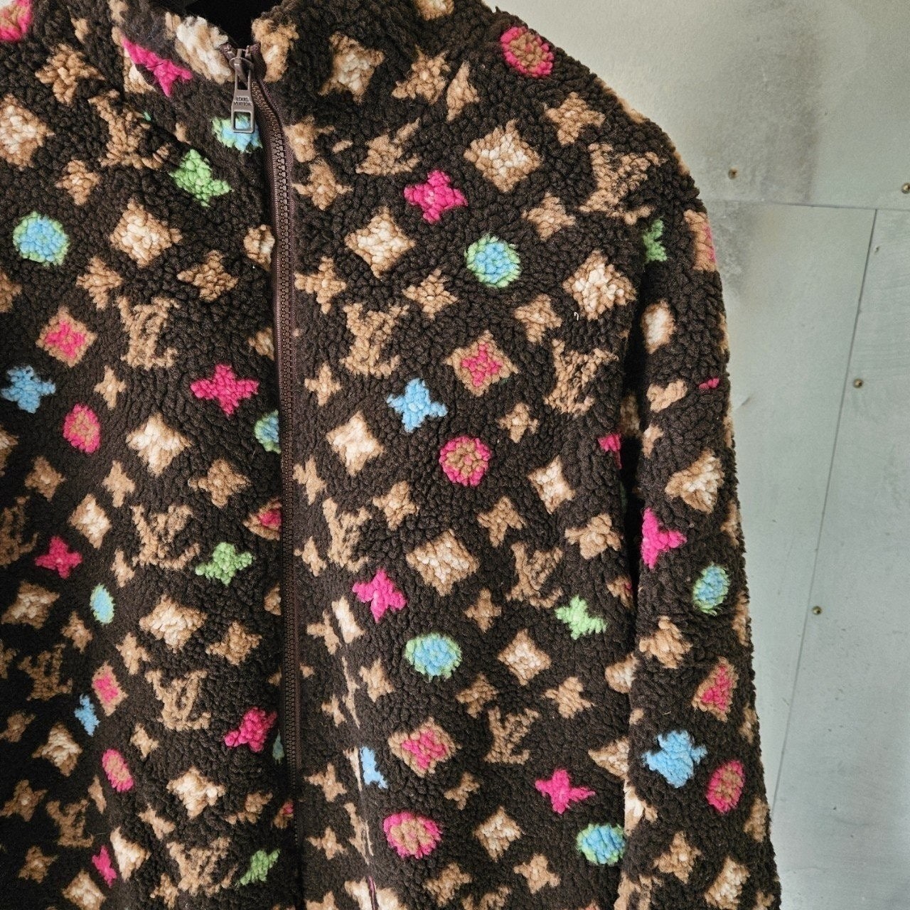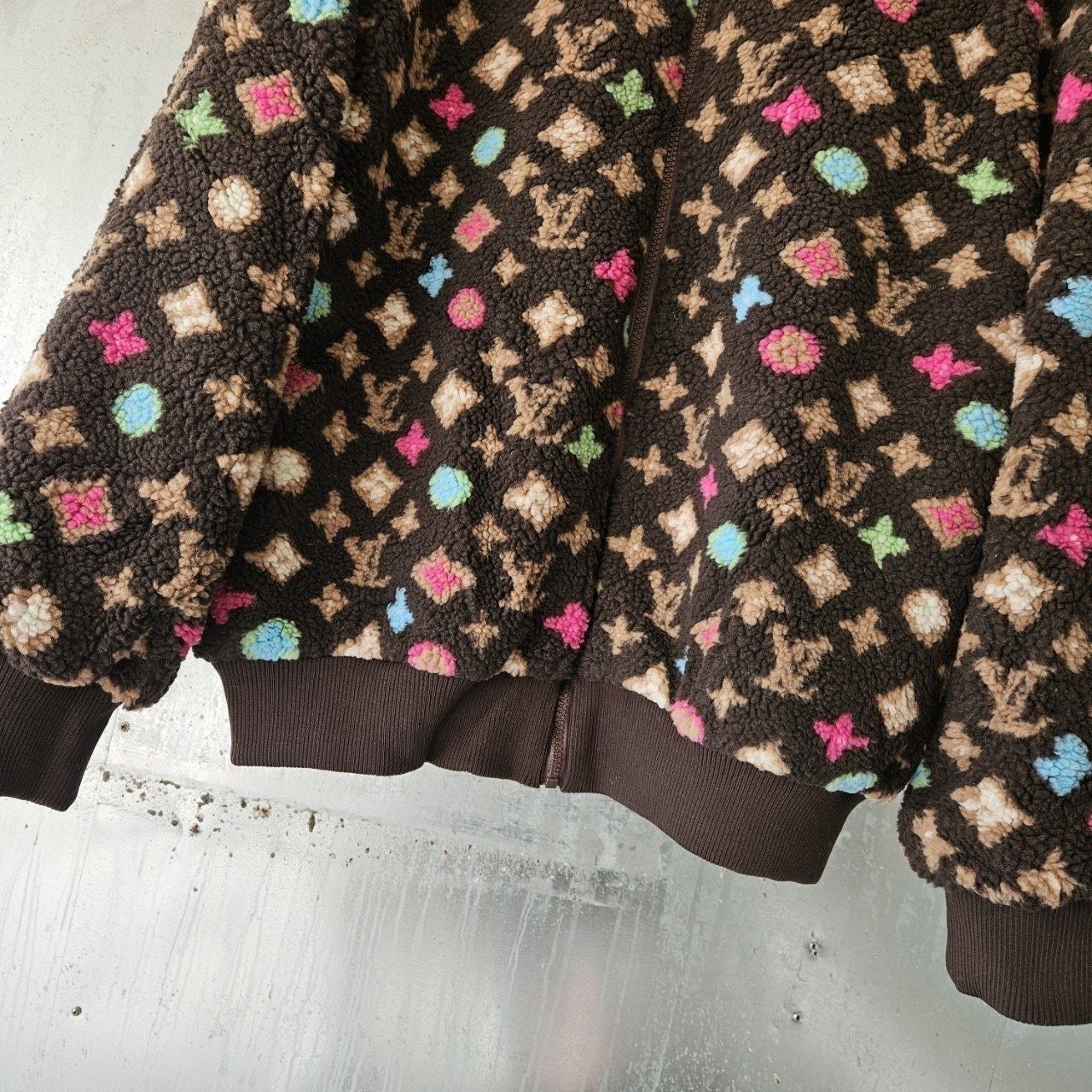 본 제품은 "루* 모노그램 플리스 자켓 로써 정규품 동일원단을 사용해 루*전문제작 공장에 오더를넣어 제작한 완벽한 상품입니다. 고급스러운 무드와 핏으로 편안하게 입으실 수 있으며 국내에서 자카드 풀 오버 니트 티셔츠흉내조차 내기 힘든 디테일이며 퀄리티 자부합니다.