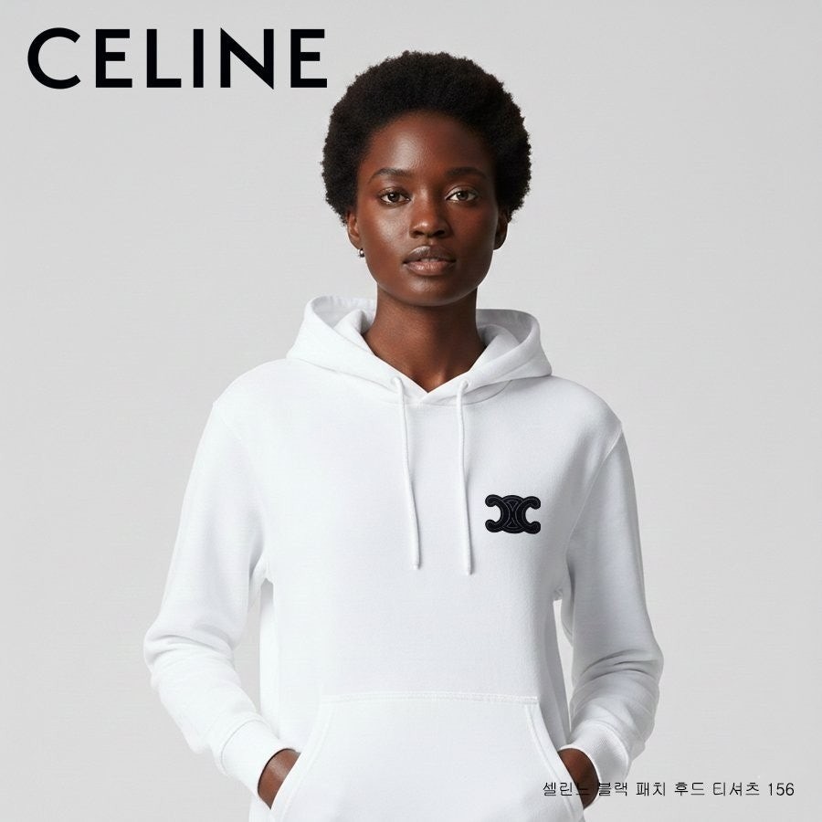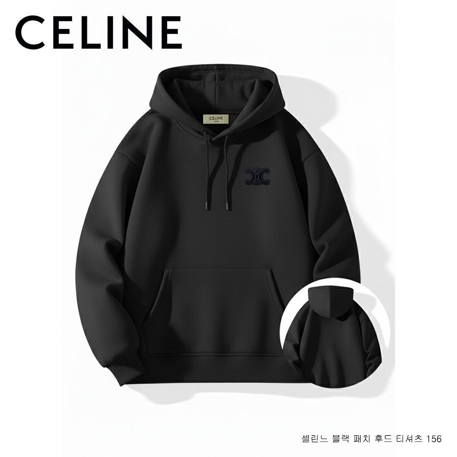 셀** 블랙 패치 후드 티셔츠 156