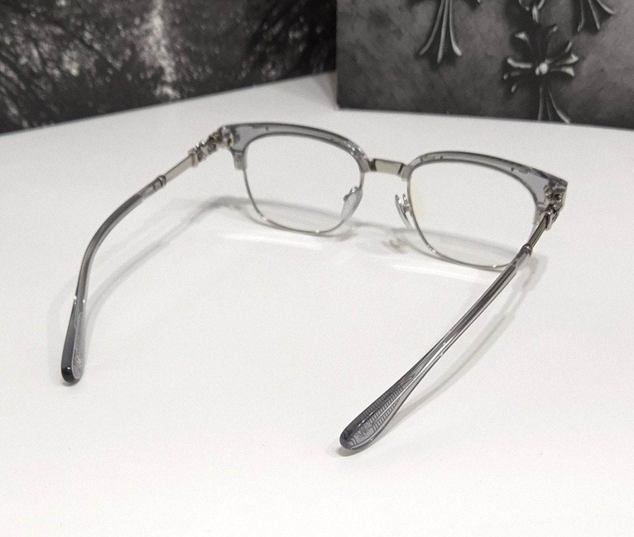 상단 아세테이트 투명그레이와 메탈이 결합된 콤비네이션의 최고급 제품