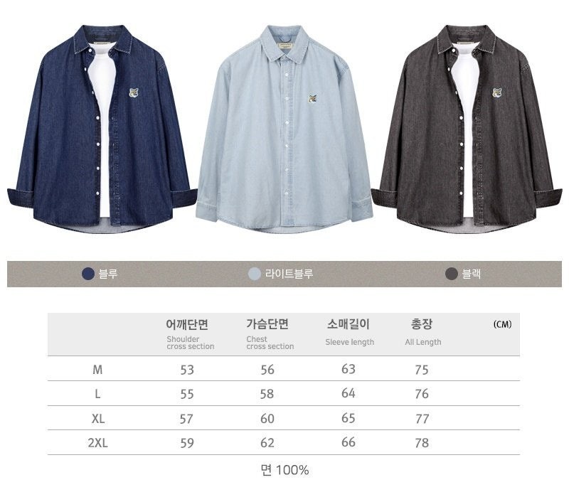 메* 키츠네 오버핏 데님 셔츠