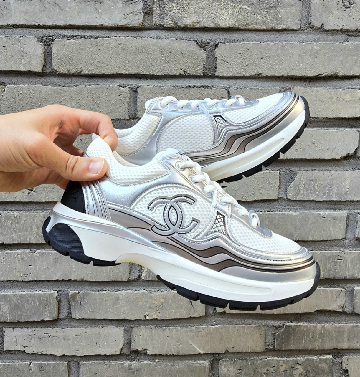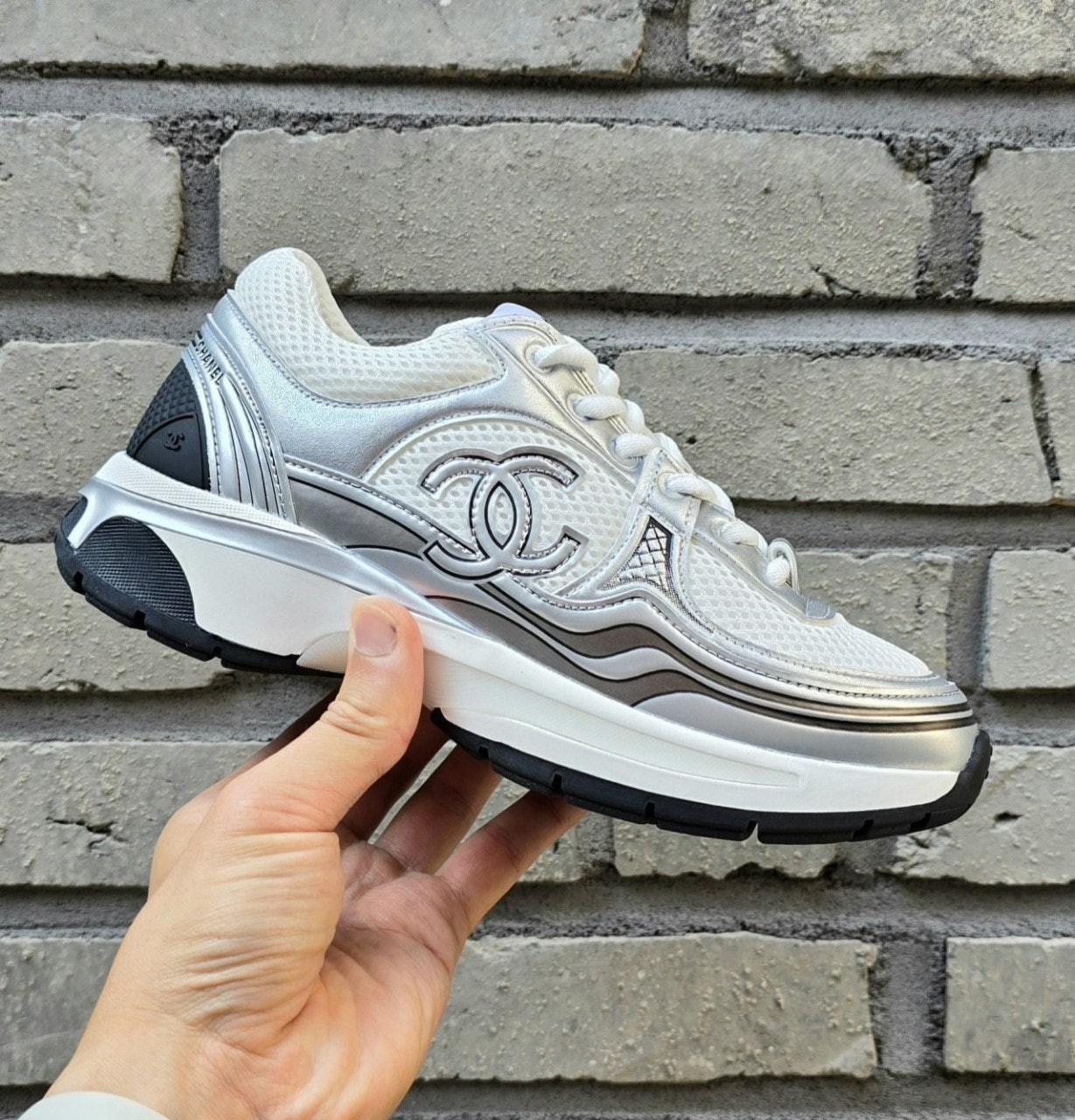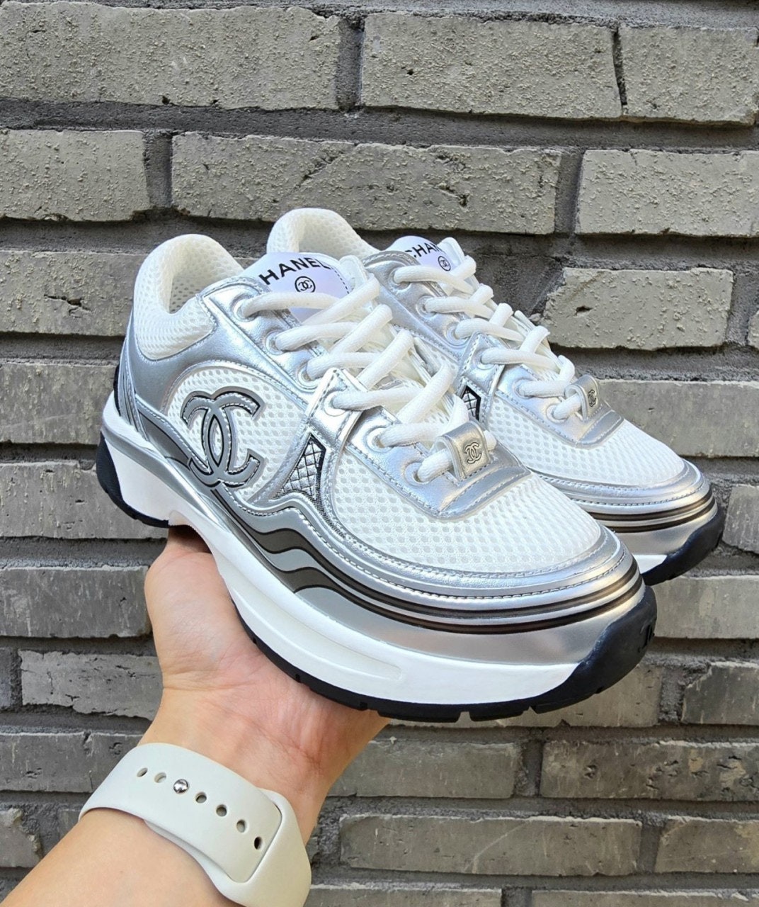 샤* 패브릭 라미네이티드 & 화이트 실버